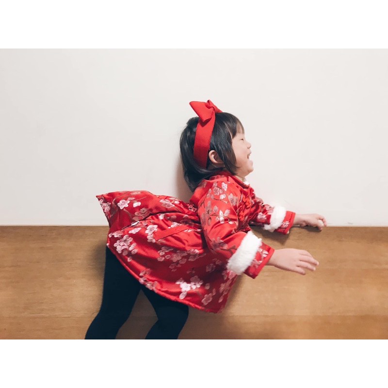 小童梅花毛邊中國風旗袍領洋裝 拜年服 旗袍裝 兒童 女童 童裝 新衣 喜酒 過年 新年 橘魔法 現貨 【BB9236】