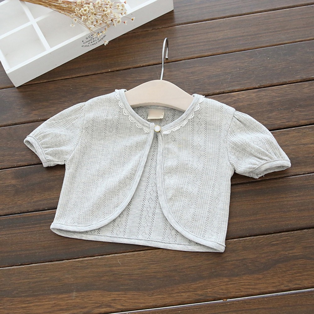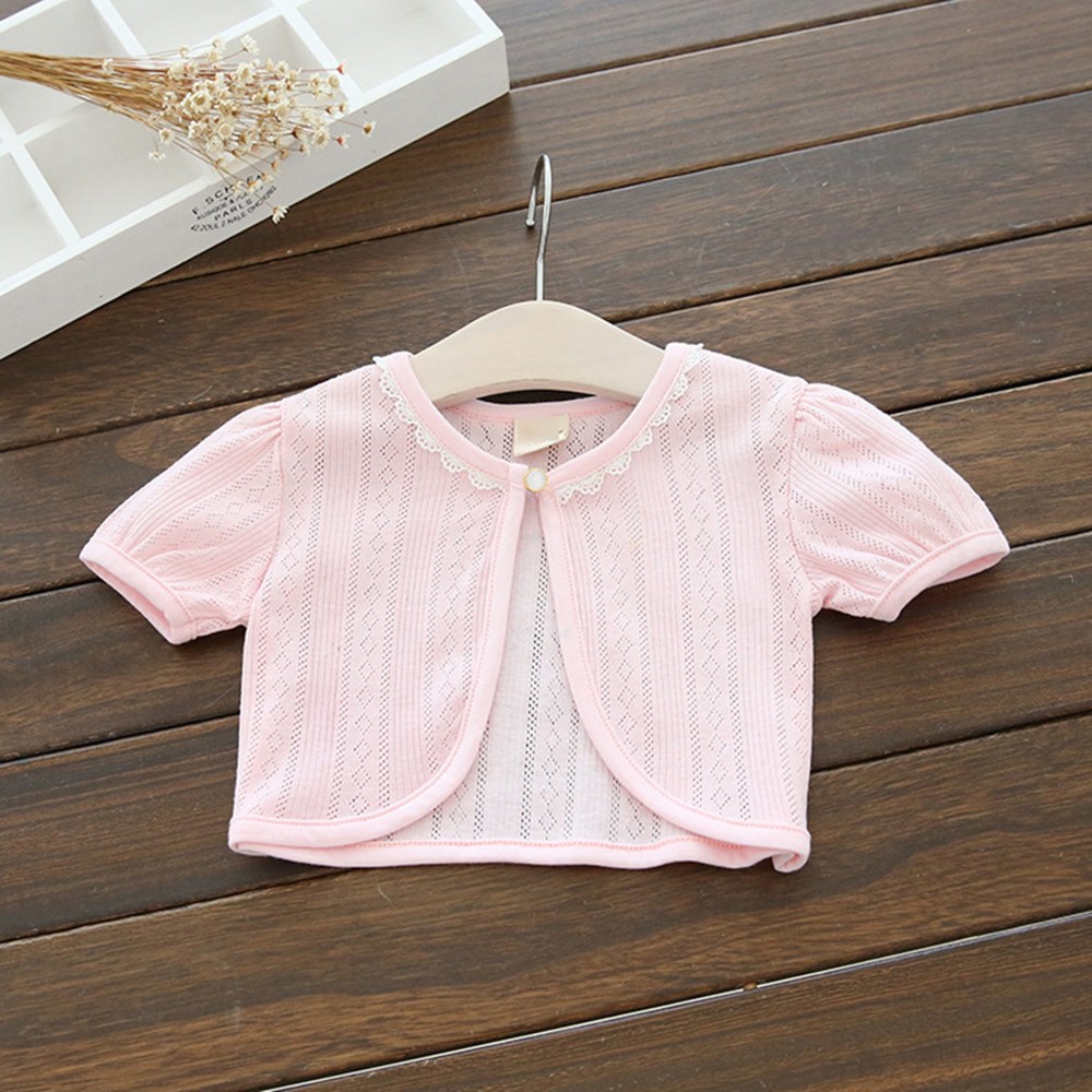 素面短袖蕾絲滾邊簍空棉質小外套 薄外套 小外套 兒童 女童 童裝 兒童外套 橘魔法 現貨【p0061208000393】
