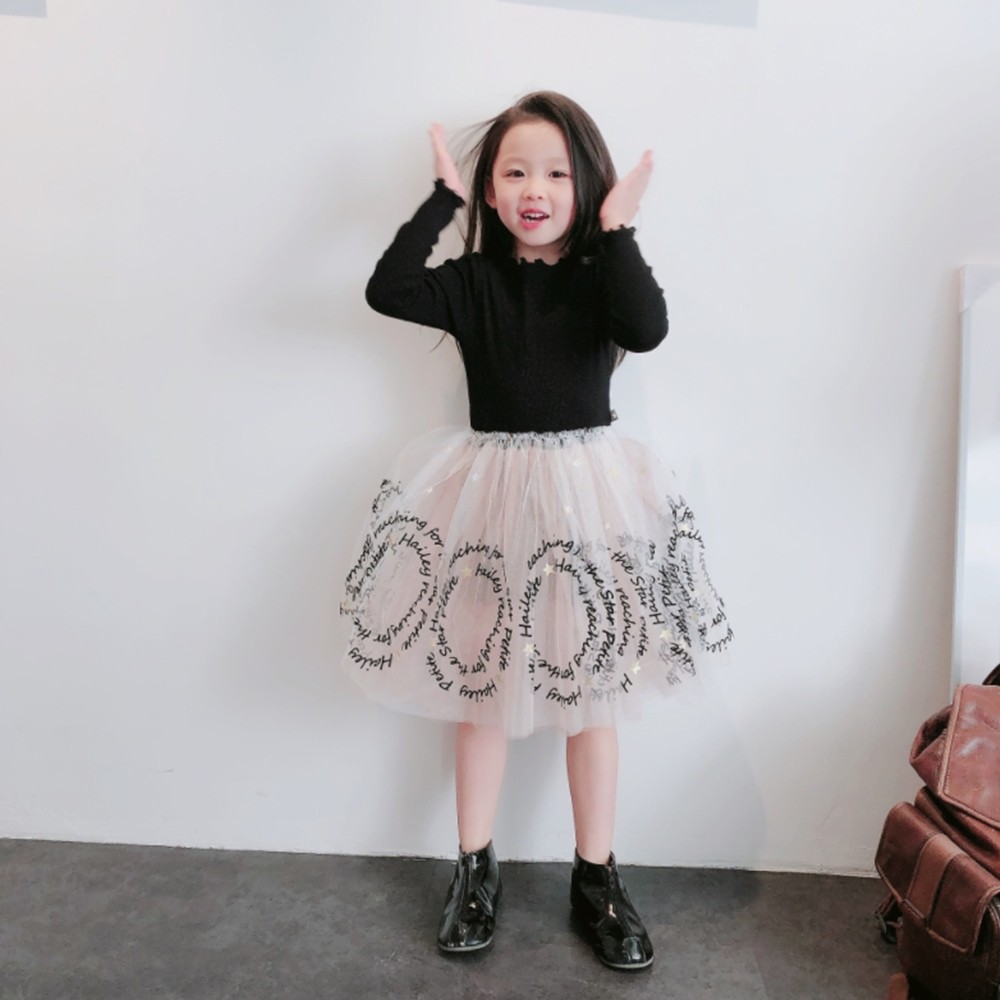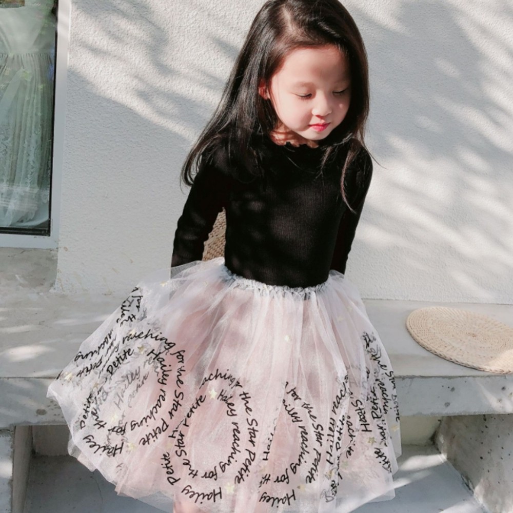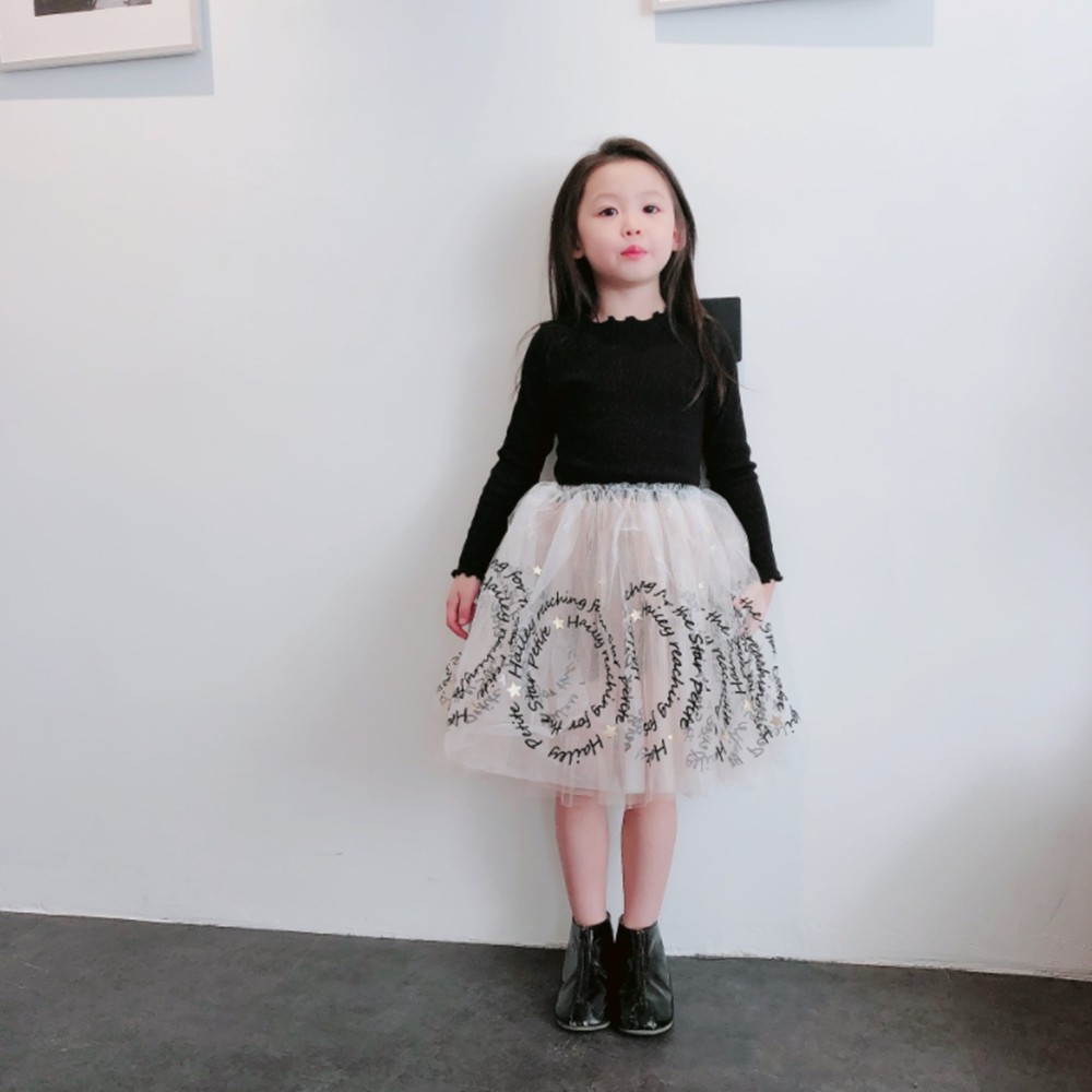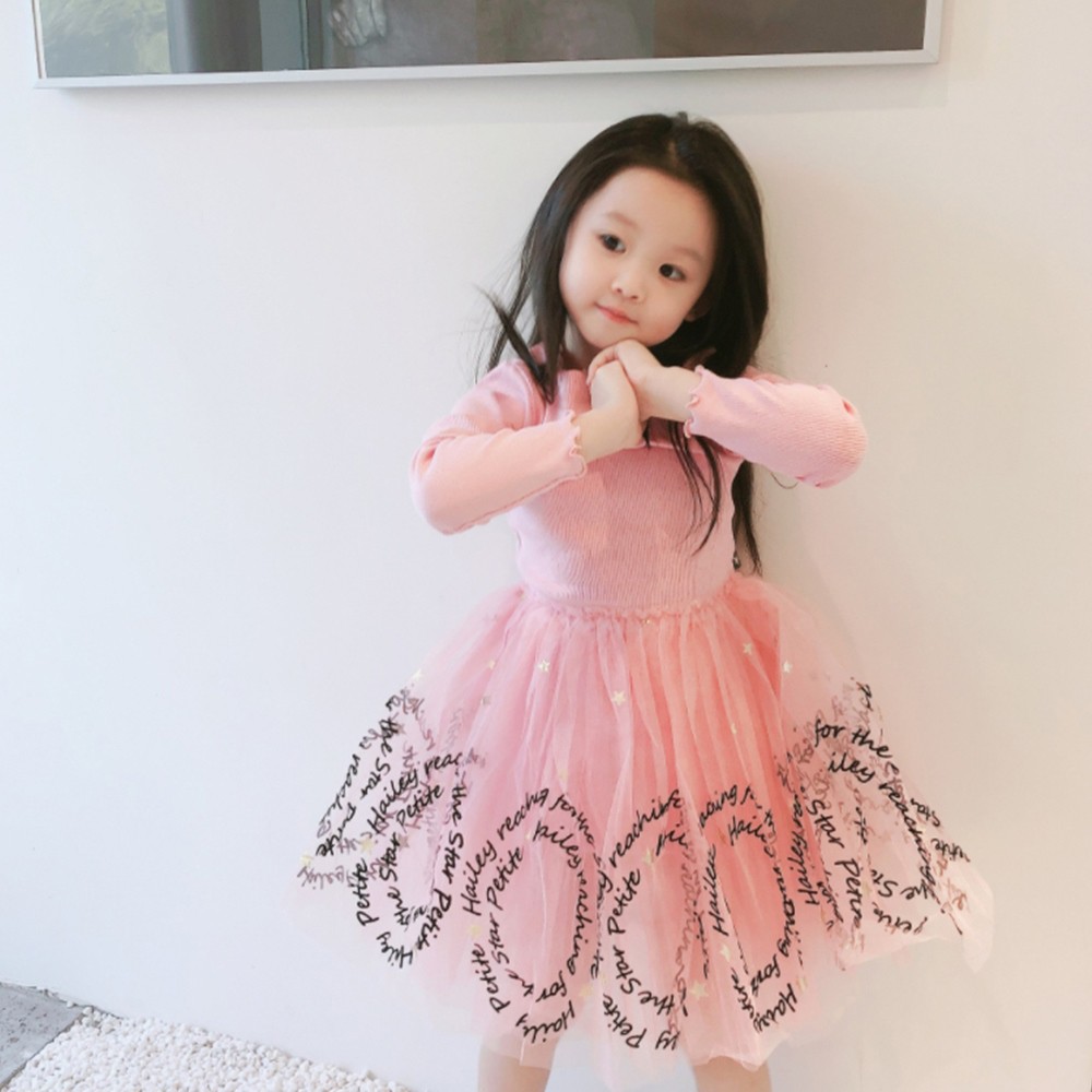 木耳邊螺紋拼接字母蕾絲紗裙洋裝 連衣裙 長袖洋裝 連身裙 連身洋裝 紗裙 女童 橘魔法【BB7701】