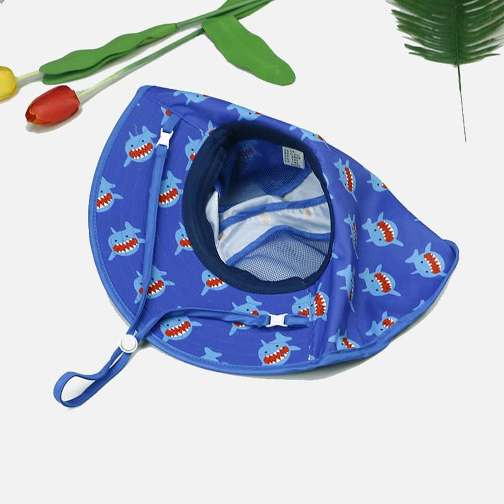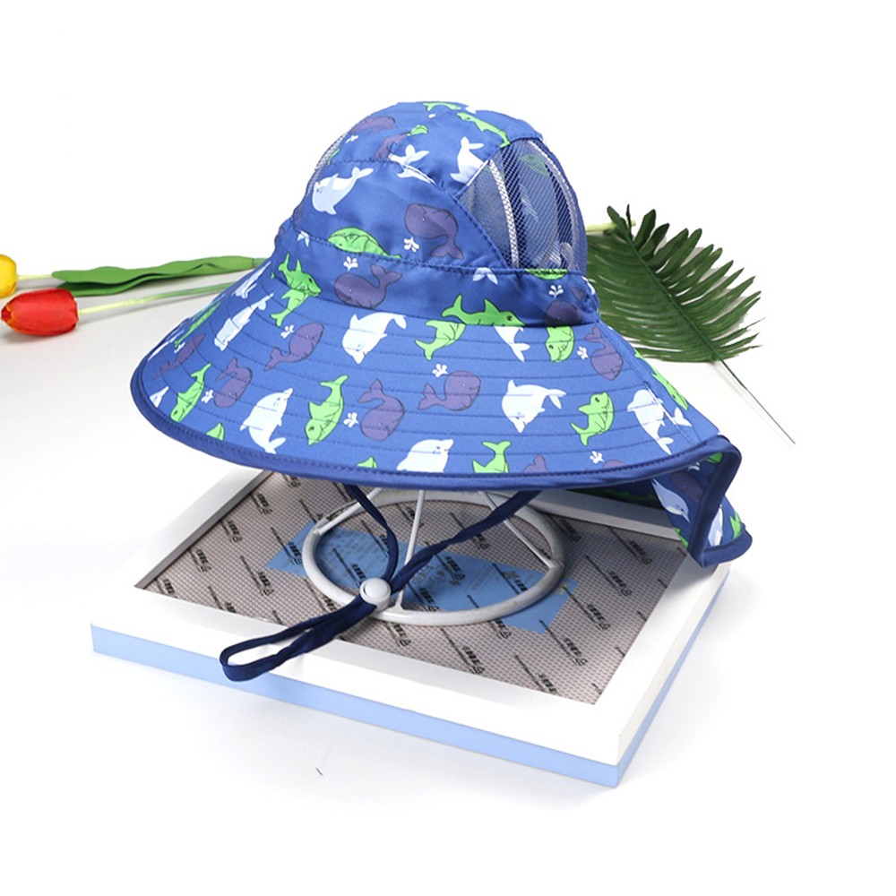 海豚滿印 透氣網眼 大帽沿 防曬遮陽帽 附防風繩 盆帽 漁夫帽 遮陽帽 童帽【p0061210786295】