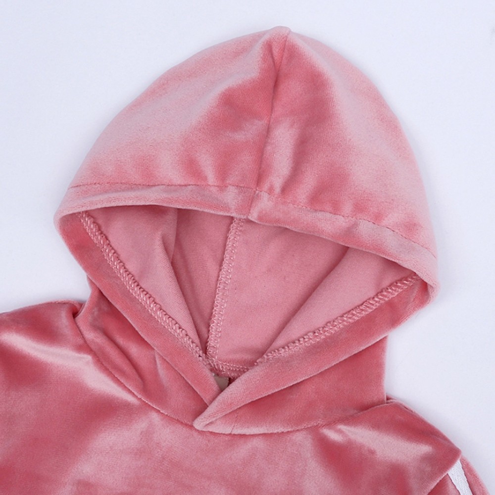 運動風金絲絨連帽長袖上衣+長褲 帽T 套裝 中性款 中童 男童 女童 童裝 橘魔法【BB8935】