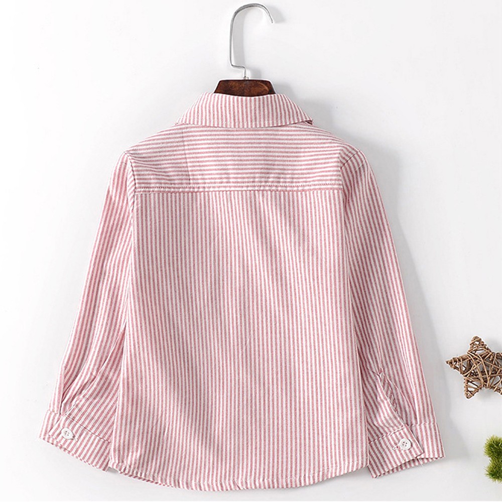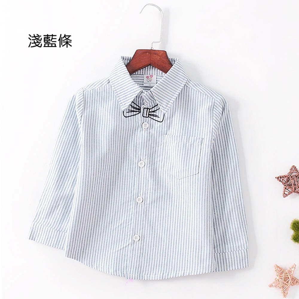 刺繡領結條紋長袖襯衫上衣 襯衫 男童 婚禮 花童 拍照 攝影 兒童 童裝 橘魔法 現貨 【BB6548】