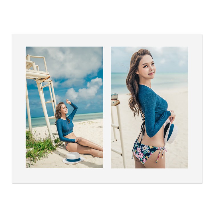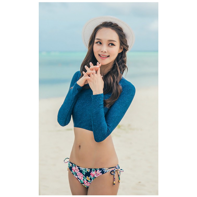 交叉繫帶美背長袖防曬泳裝+花朵泳褲 水母衣 比基尼 橘魔法 現貨 衝浪 泳裝 浮淺 防磨衣 【BB8028】