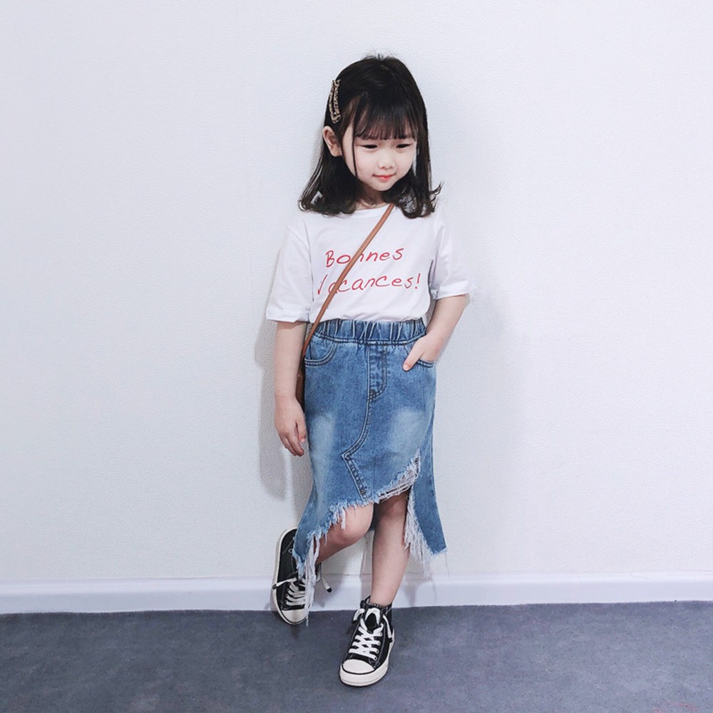 不規則鬚邊牛仔裙 (大人賣場) 及膝裙 窄裙 牛仔裙 半身裙 親子裝 母女裝 女童 【p0061214696645】