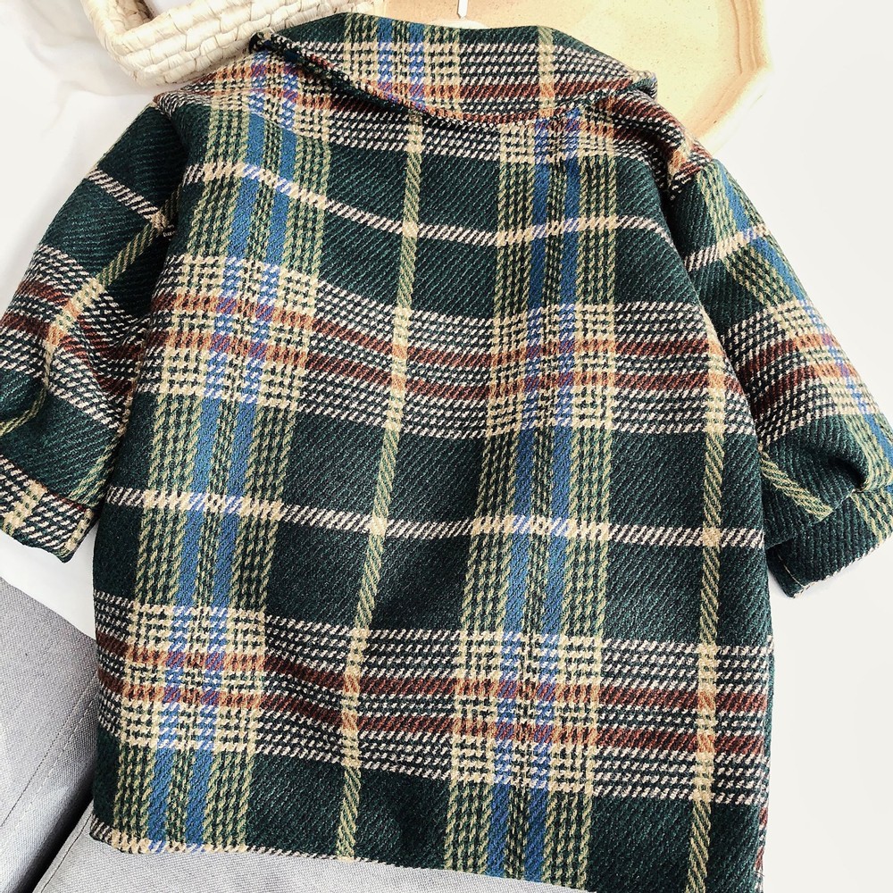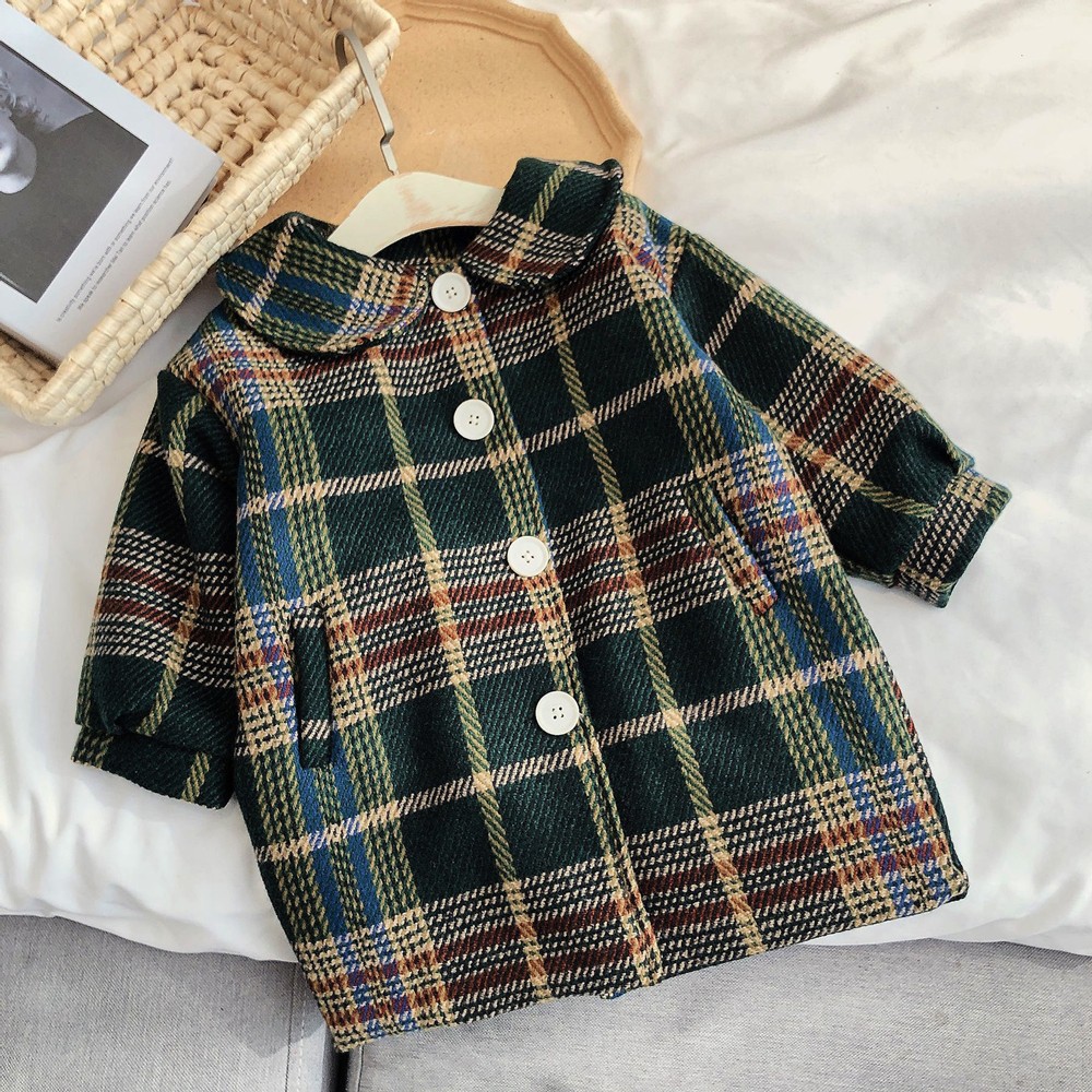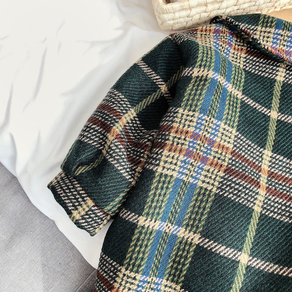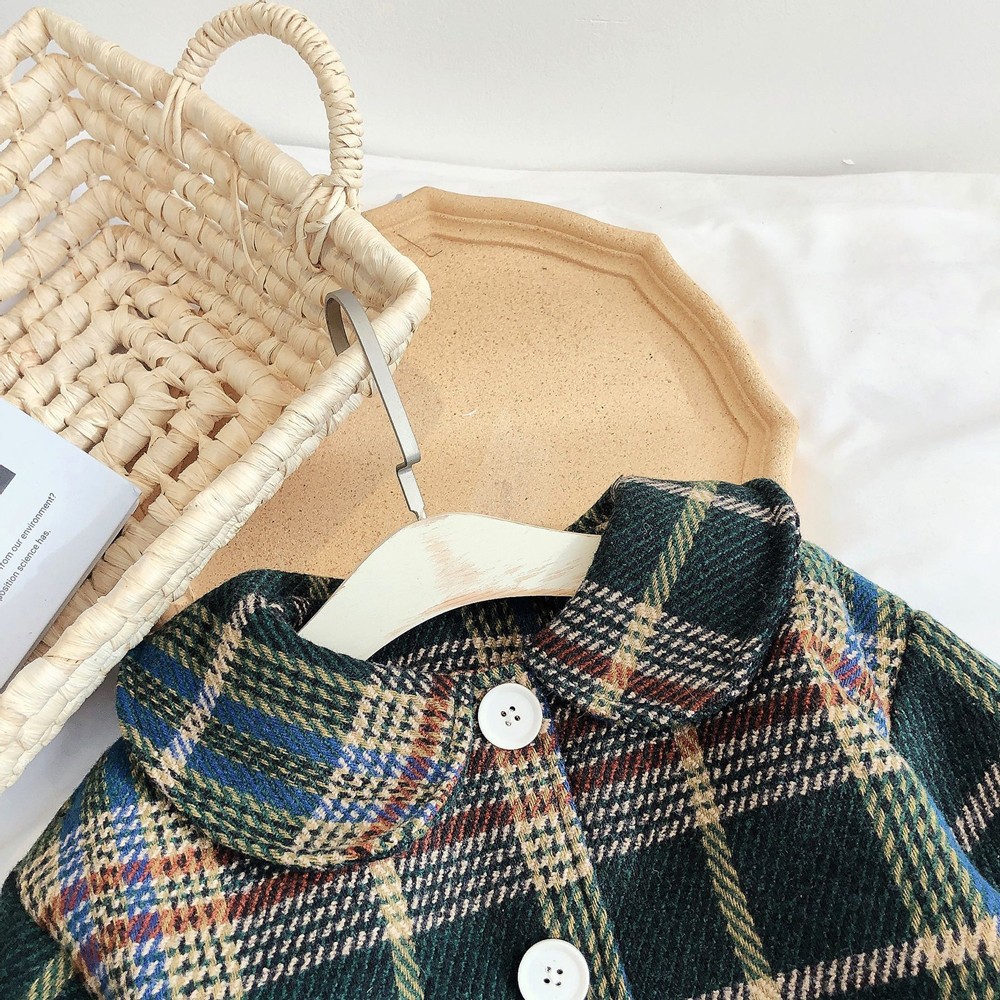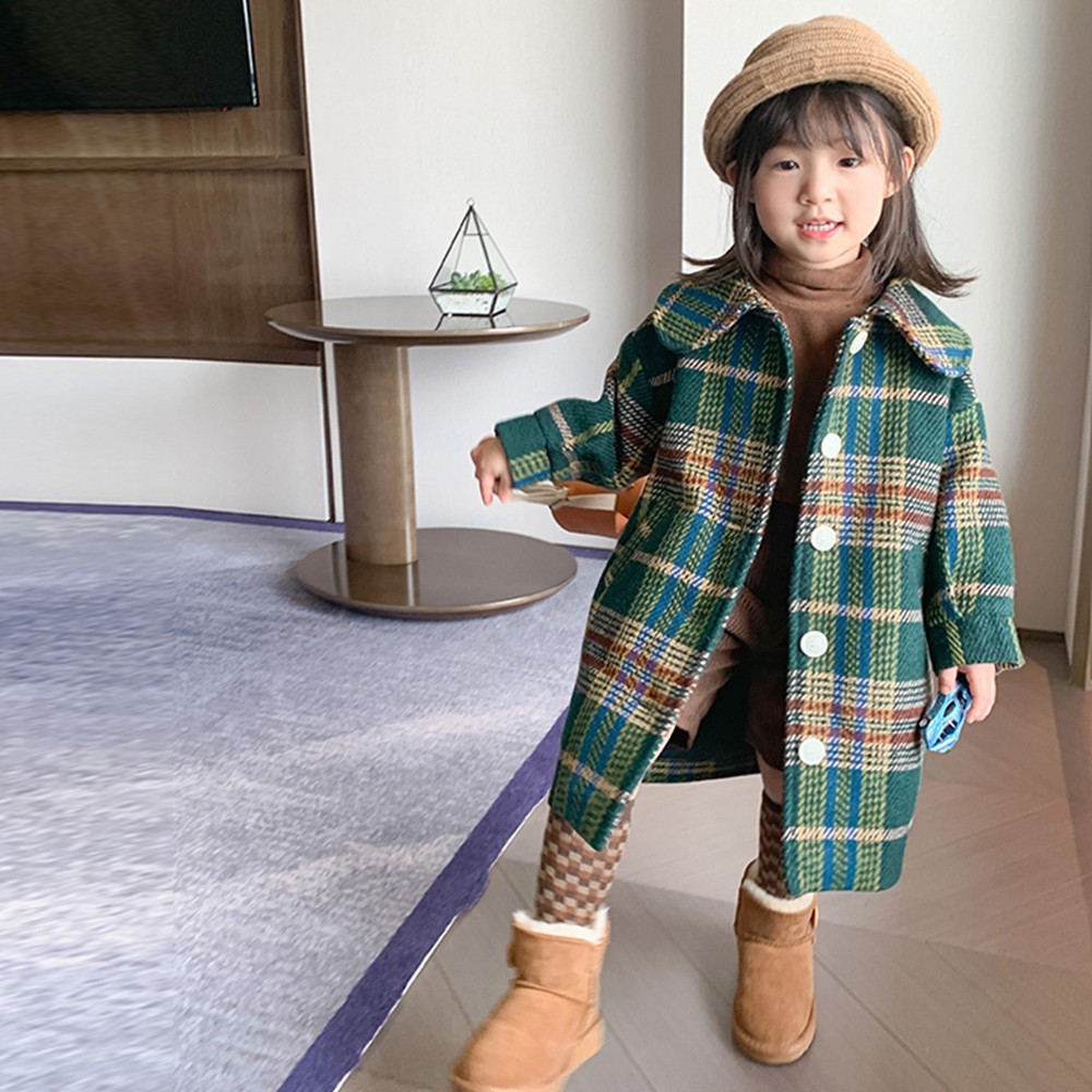 英倫復古格紋小圓翻領長袖大衣外套 大衣 外套 厚外套 女童 橘魔法 現貨 兒童 中童【p0061219735979】