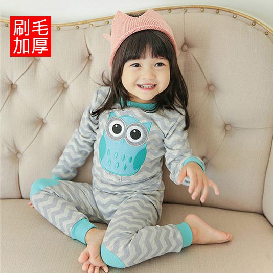 波浪貓頭鷹居家服套裝 長袖上衣 褲子 長褲 內搭衣 童裝 兒童 小童 橘魔法 現貨 【 BB7676】