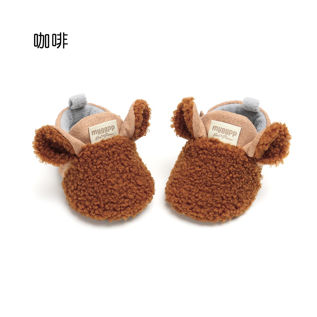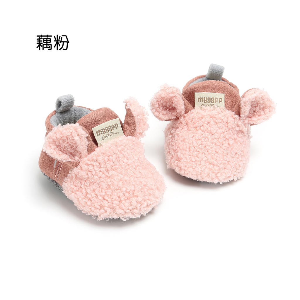 立體耳朵羊羔絨拼接麂皮學步鞋 防滑點膠 學步鞋 嬰兒鞋 休閒鞋 鞋子 新生兒 橘魔法【p0061221364854】