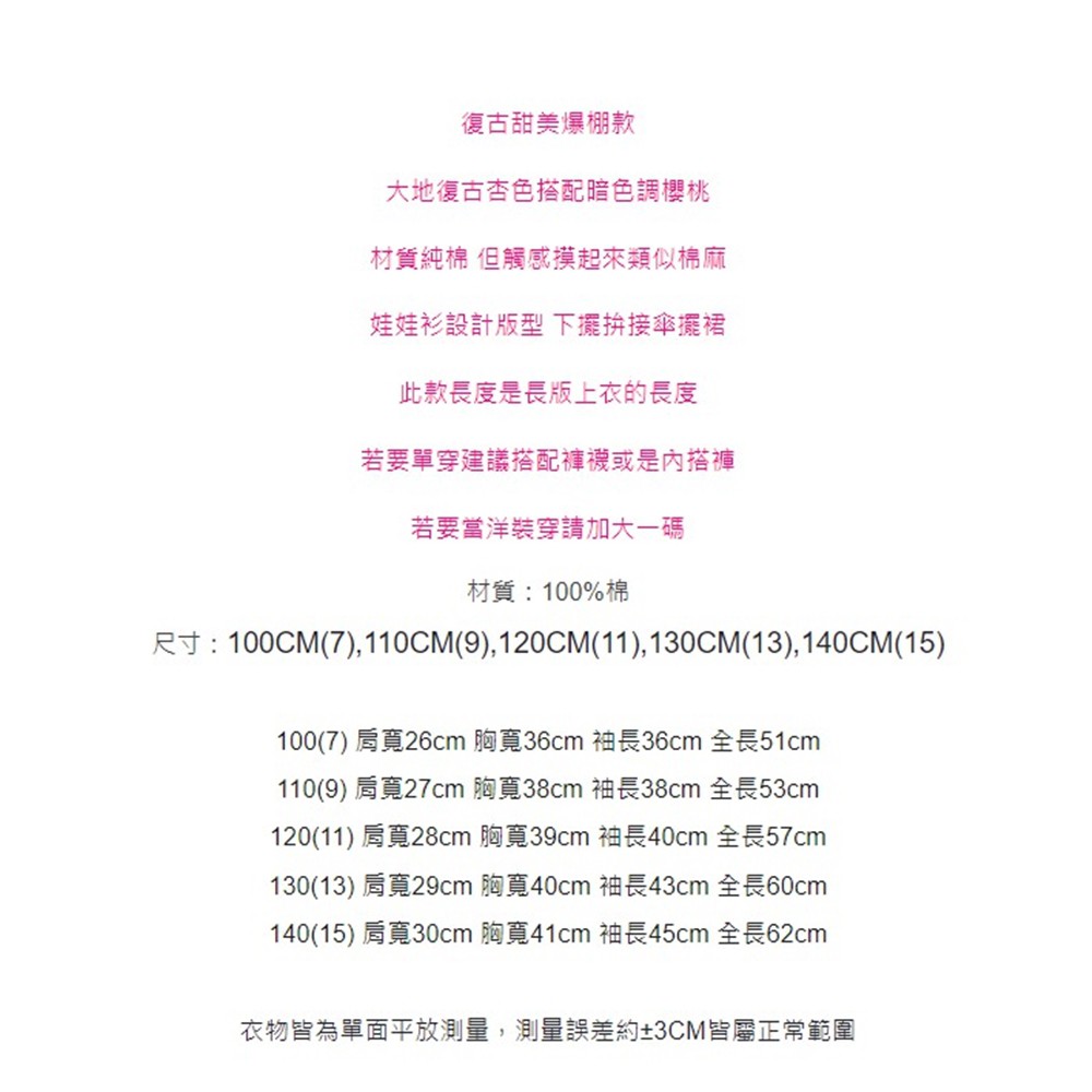 復古感櫻桃滿印長袖長版上衣 長版上衣 連身裙 洋裝 女童 橘魔法 現貨 童裝【p0061218020354】