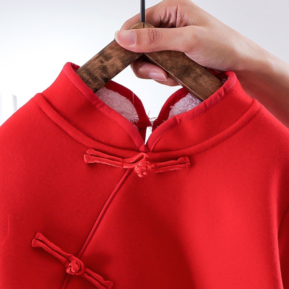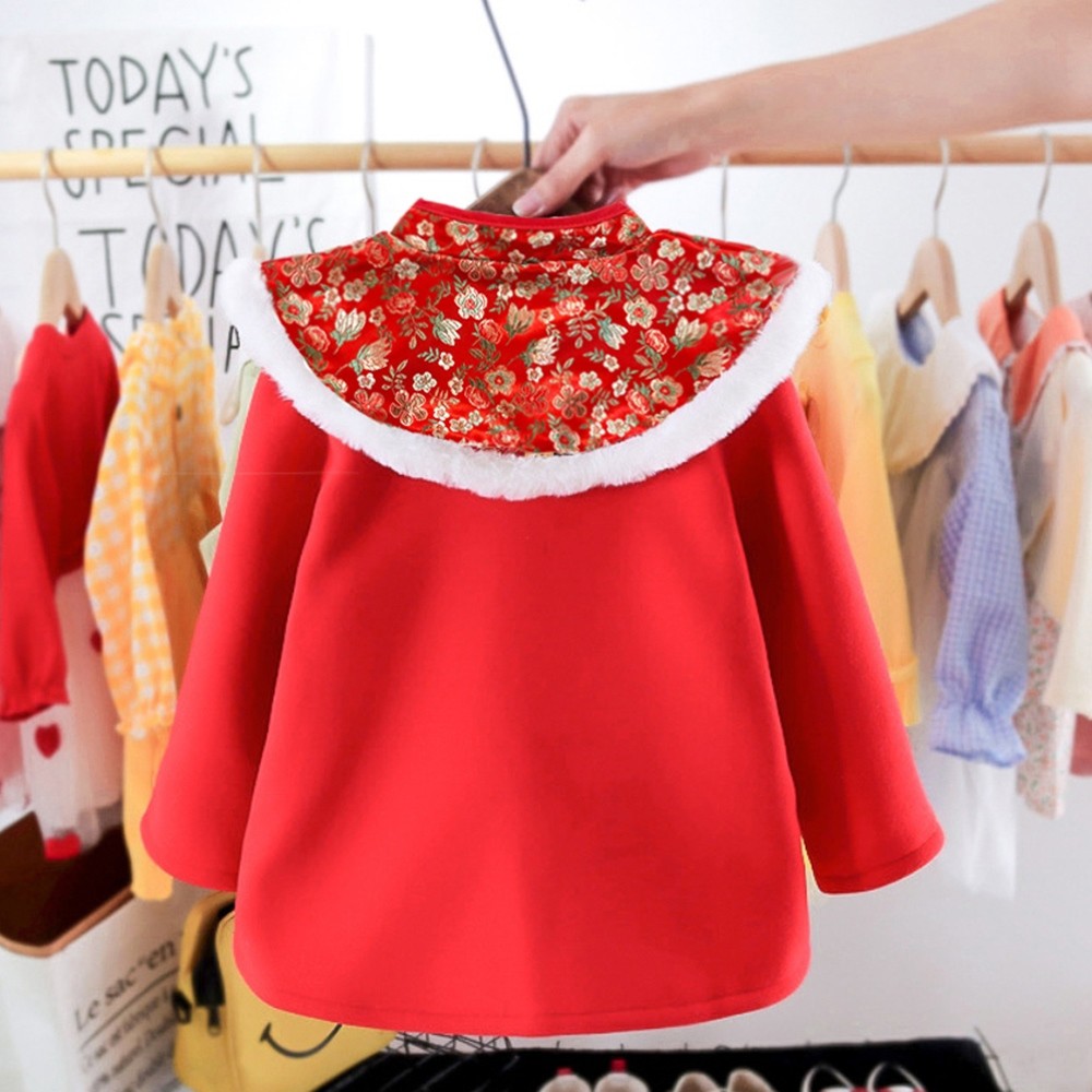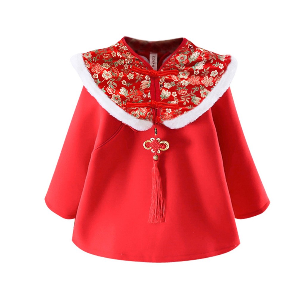 花花刺繡毛毛旗袍領毛尼長版上衣 旗袍裝 童裝 過年 唐裝 新衣 喜酒 女童 拜年服 【p0061222183420】