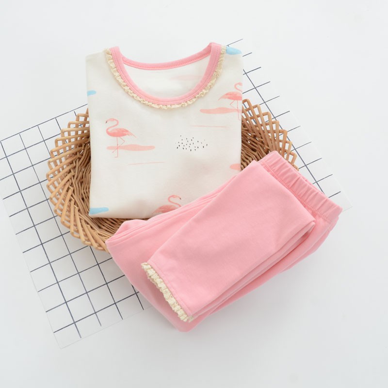 蕾絲滾邊長袖上衣+長褲 居家服 套裝 小童~大童 橘魔法現貨在台灣 女童 兒童 童裝【p0061142849186】