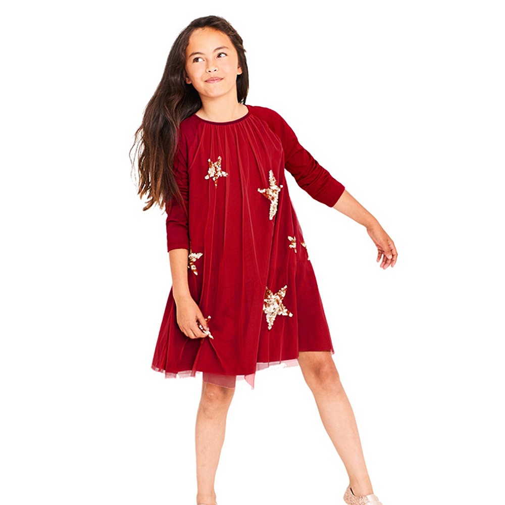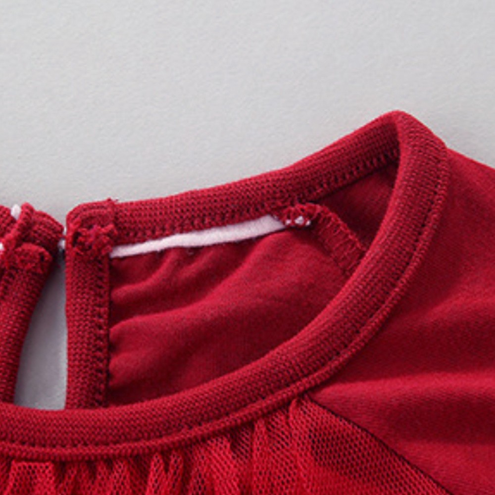 酒紅亮片星星抓皺拼接紗長袖上衣 長版上衣 聖誕服裝 聖誕節 過年 新年 女童 童裝 兒童 橘魔法 現貨【BB7695】