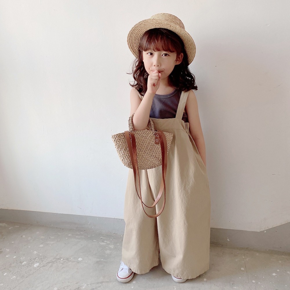 日系風寬鬆吊帶寬褲 吊帶褲 闊腿褲 防蚊褲 褲子 兒童 女童 大童 童裝 橘魔法 現貨【BB8140】
