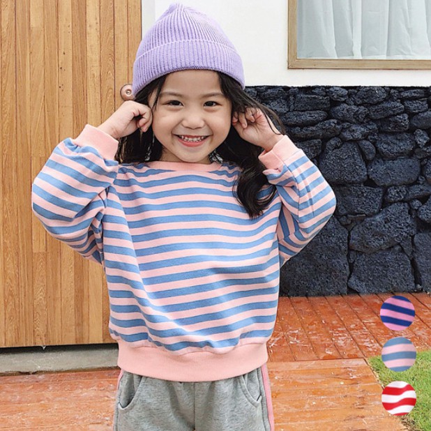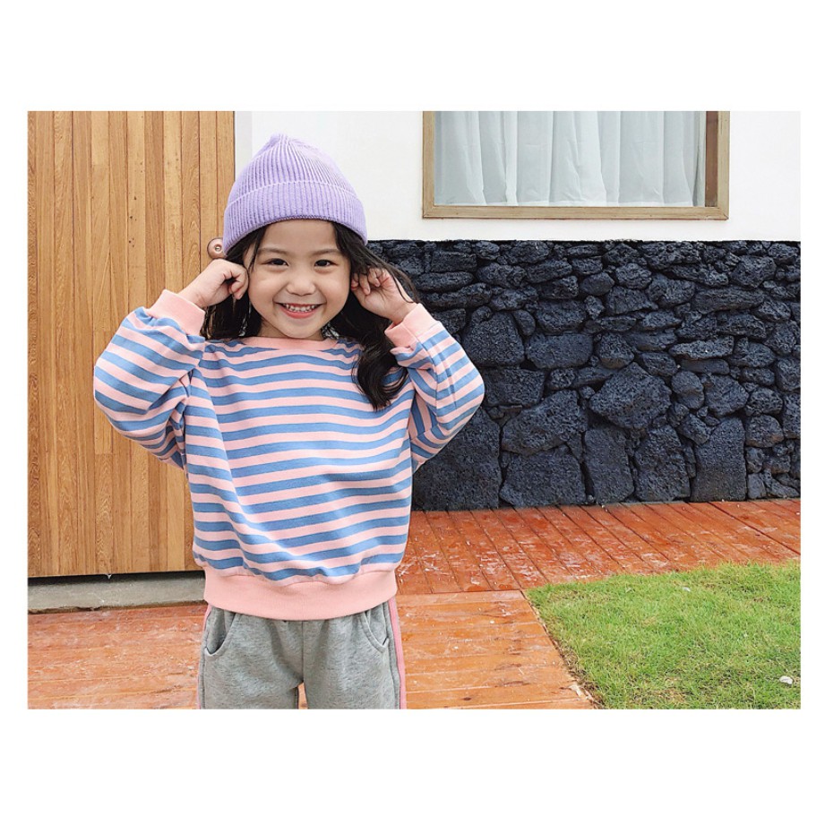 條紋配色長袖衛衣 衛衣 長袖上衣 女童 橘魔法 中童 童裝 上衣 現貨在台灣【p0061196198422】
