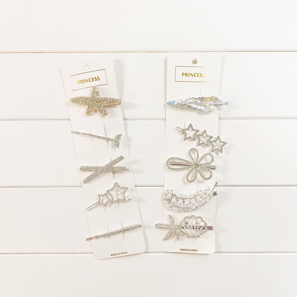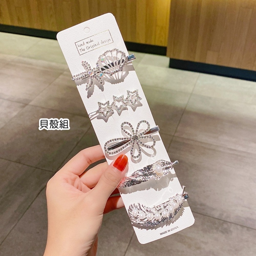 (5款一組)華麗海洋 星星 貝殼 水鑽髮夾 髮夾 髮飾 現貨 花童 禮服 畢業典禮 婚禮【p0061219412043】