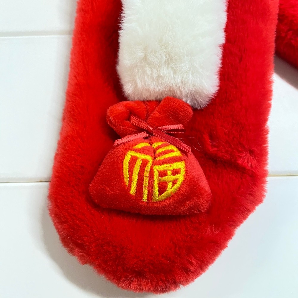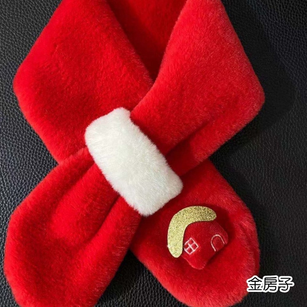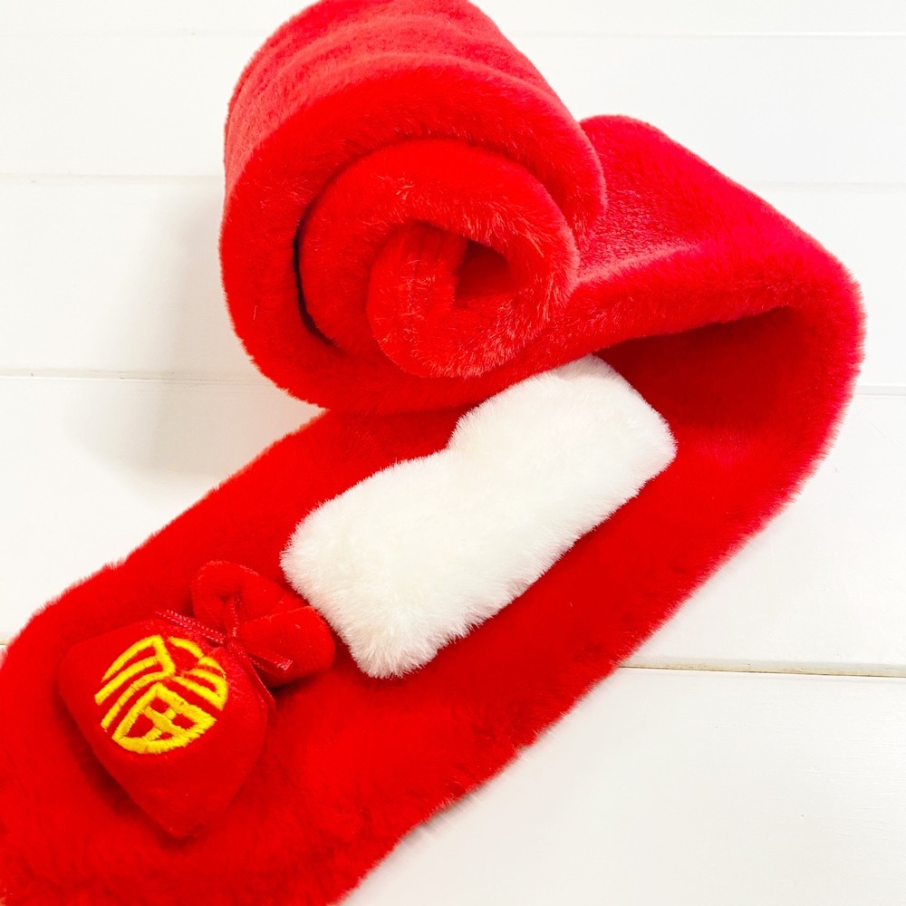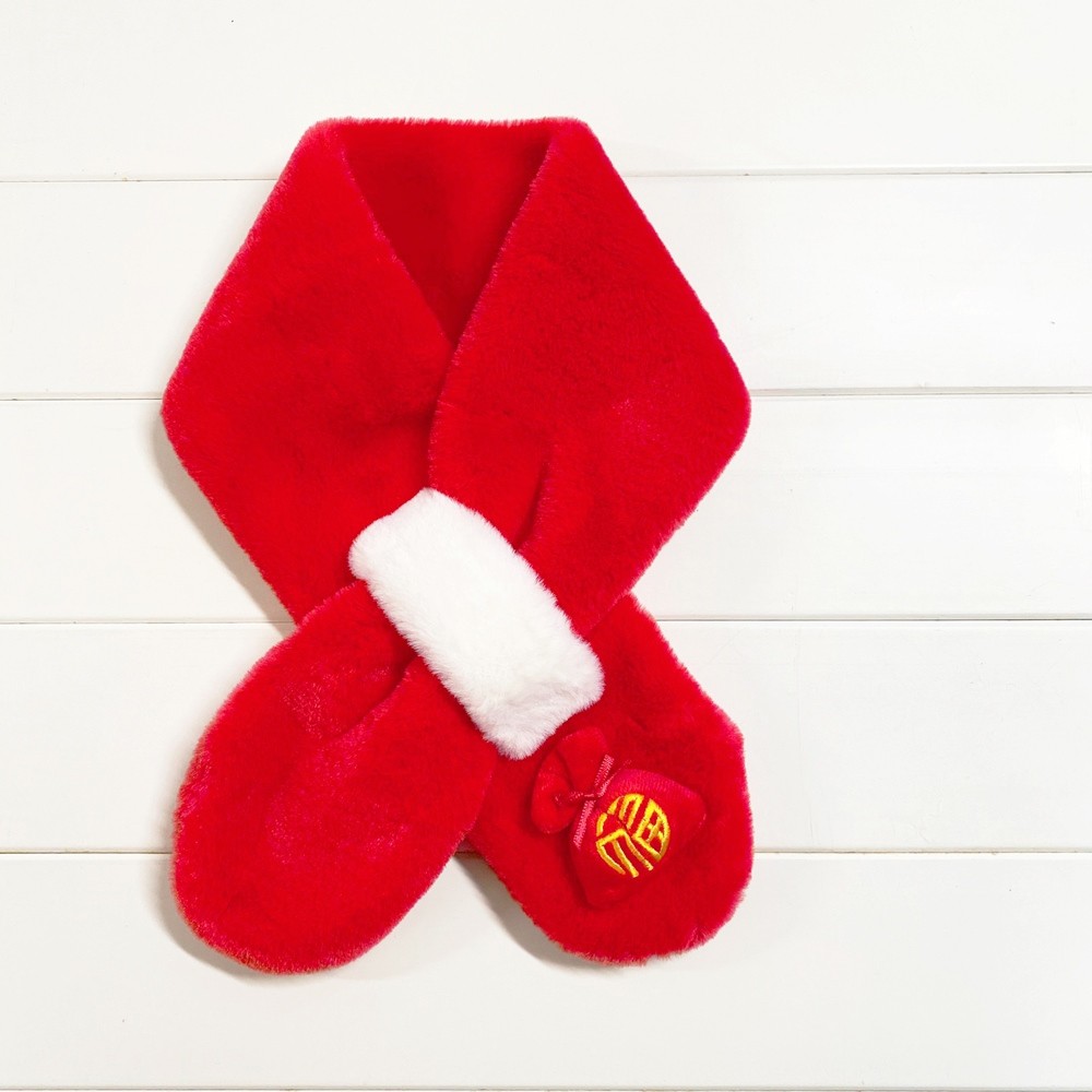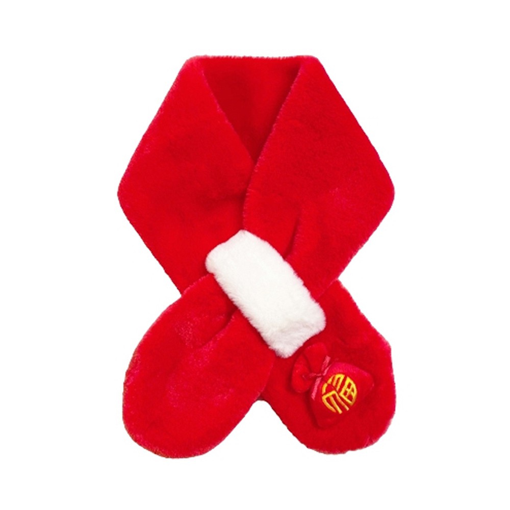 喜氣立體裝飾珊瑚絨毛絨保暖圍脖 大紅 圍巾 過年 新年 寒流 兒童 小童 女童 男童 【p0061222002891】