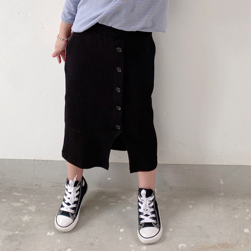 前開岔螺紋彈性及膝窄裙 (大人賣場) 半身裙 中長裙 親子裝 母女裝 橘魔法【p0061217138291】