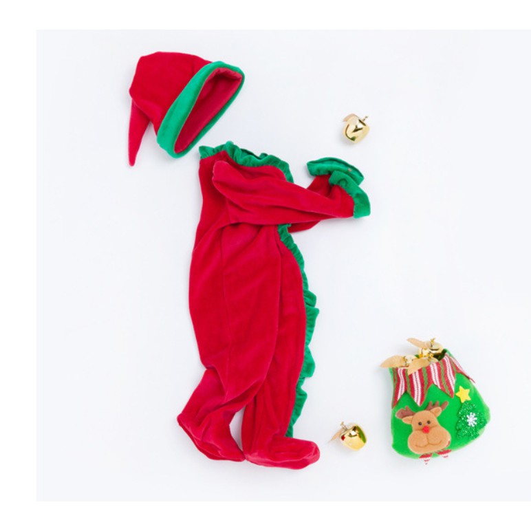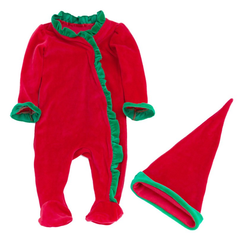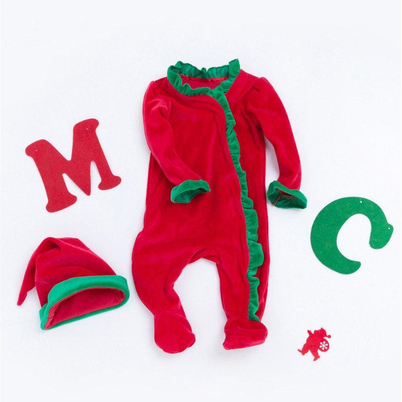 聖誕節配色荷葉滾邊包腳連身衣+聖誕帽 新生兒 連身衣 聖誕節 角色扮演 橘魔法 【p0061199406353】