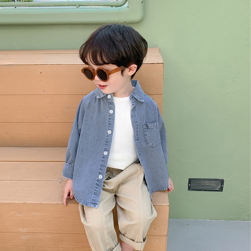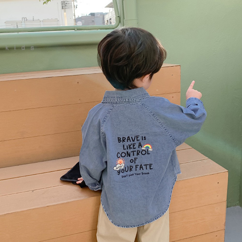 背後字母插肩薄款牛仔襯衫 襯衫 可當薄外套 罩衫 中性款 薄長袖 男童 女童 中性款【p0061217865700】
