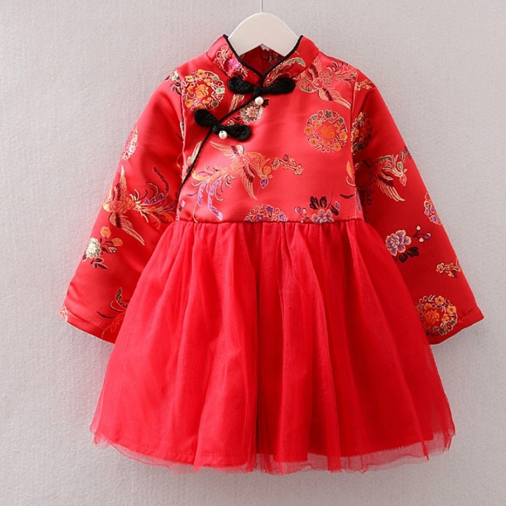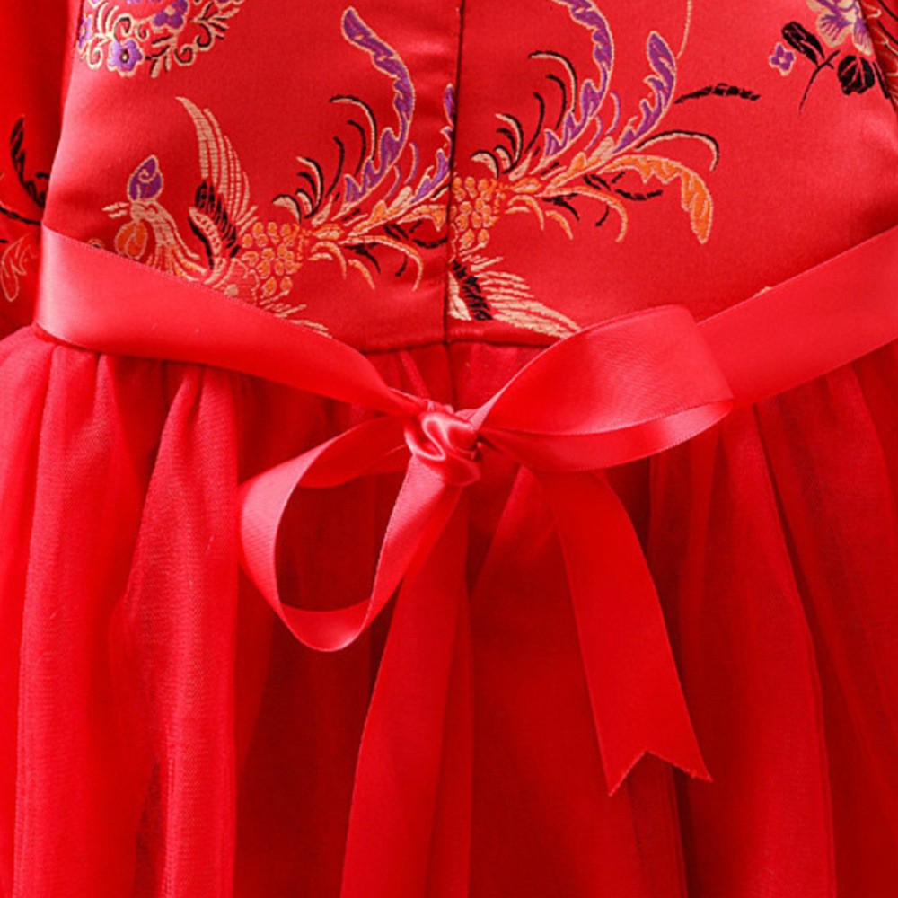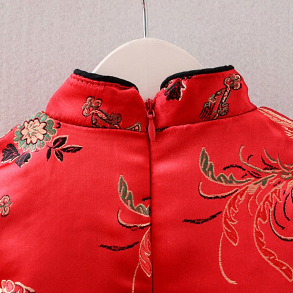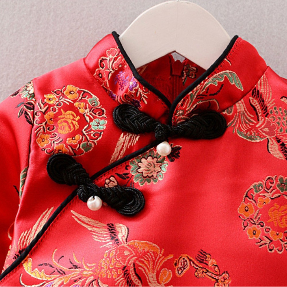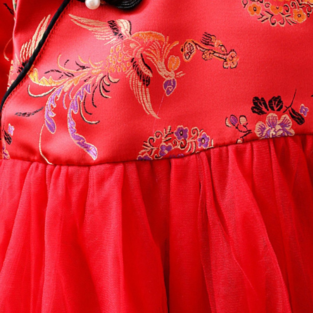 鳳凰印花珍珠中國結旗袍洋裝 連衣裙 旗袍裝 童裝 過年 唐裝 大紅 新衣 喜酒【BB7234