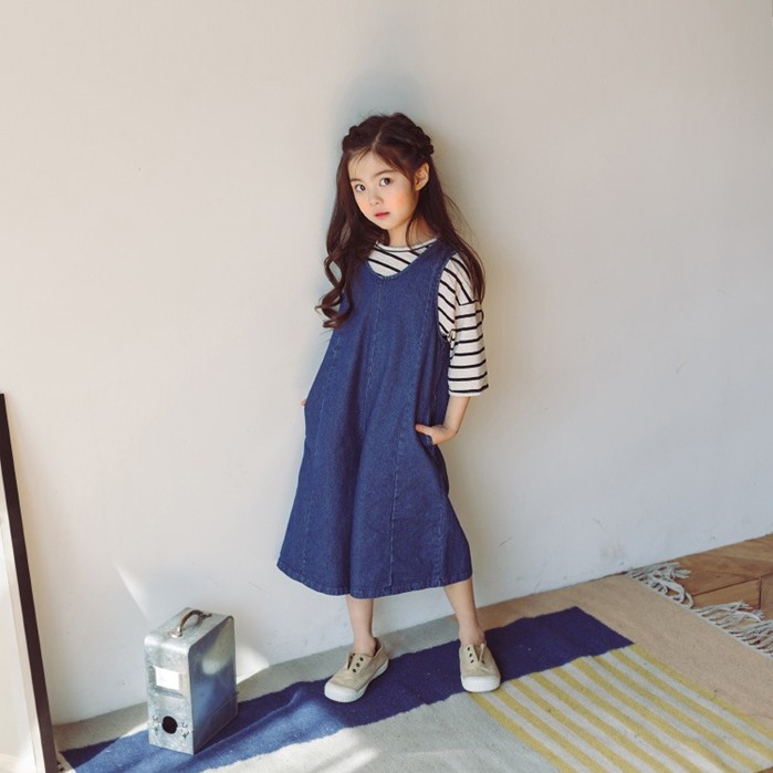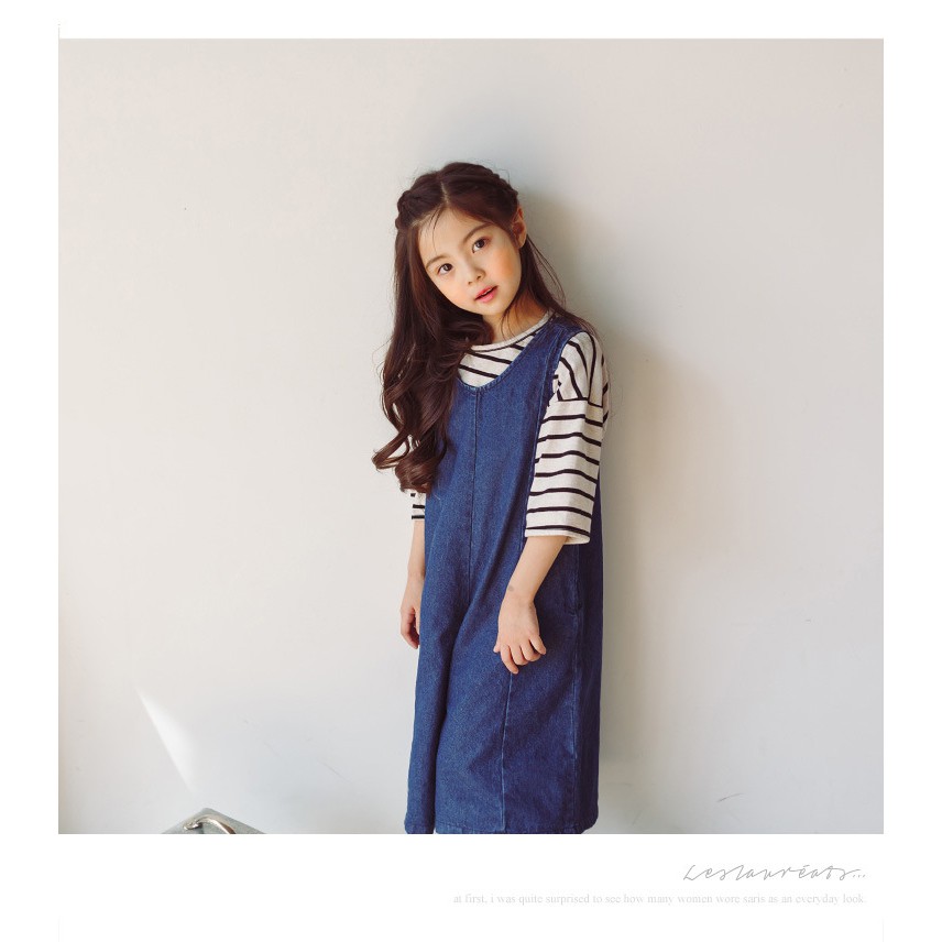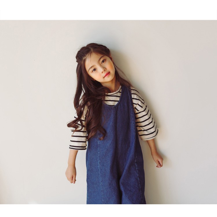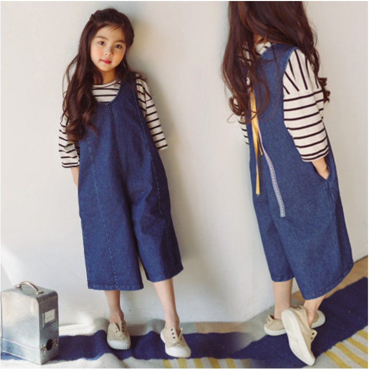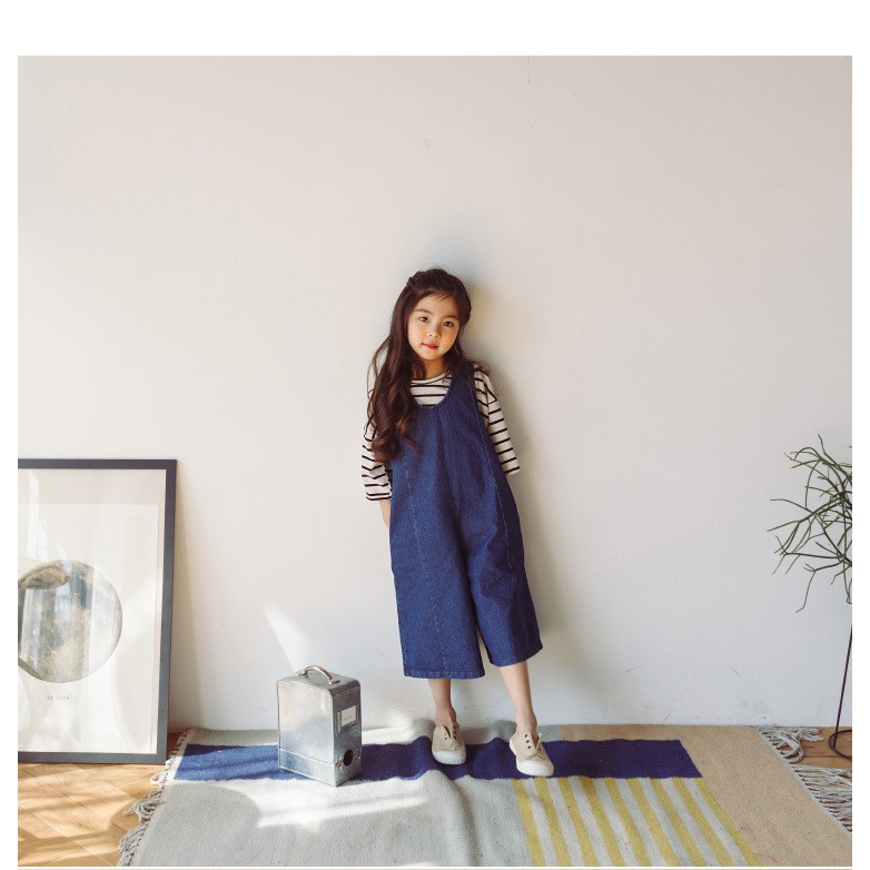 牛仔連身闊腿褲 寬褲 背帶褲 吊帶褲 大童 橘魔法現貨在台灣 女童褲【p0061185080445】