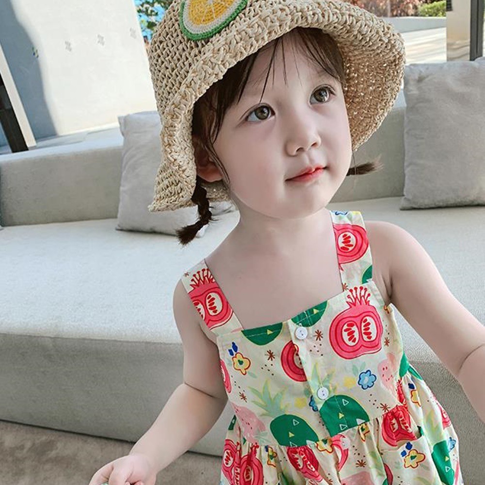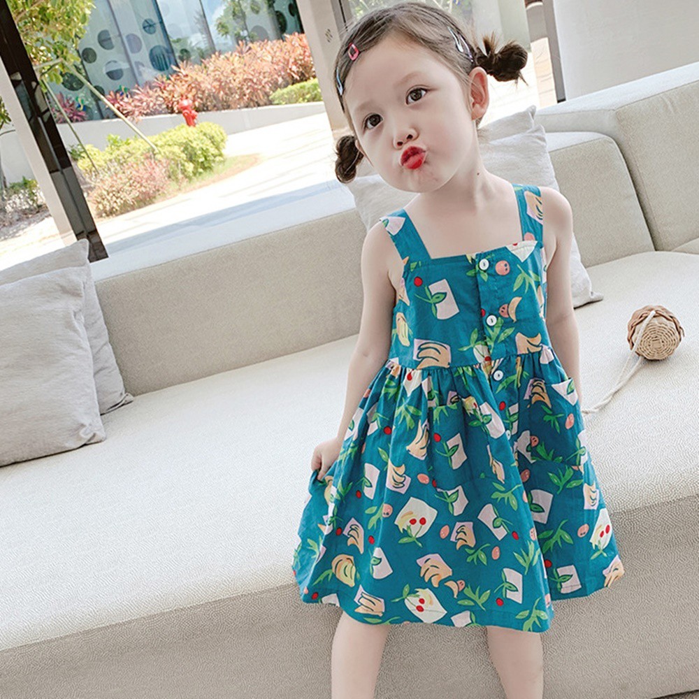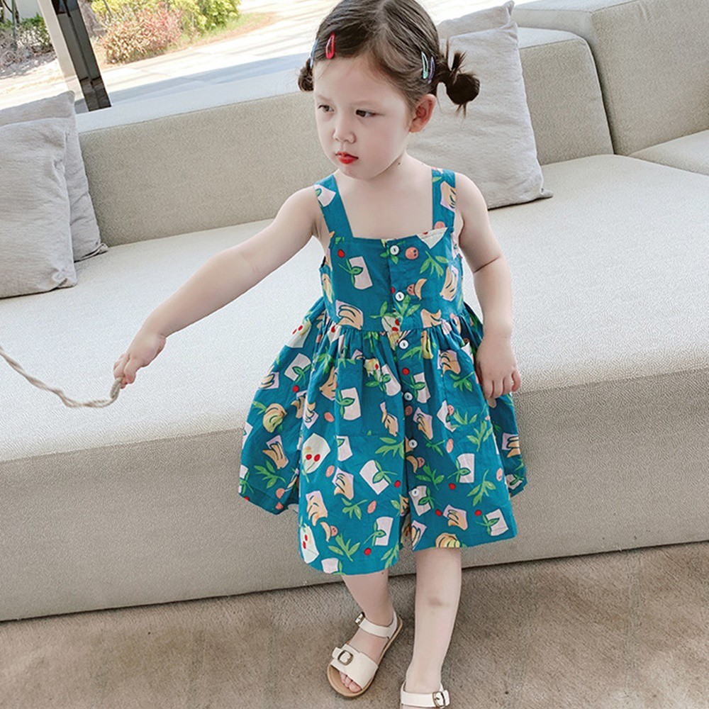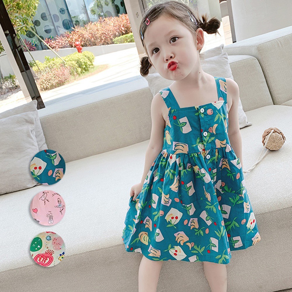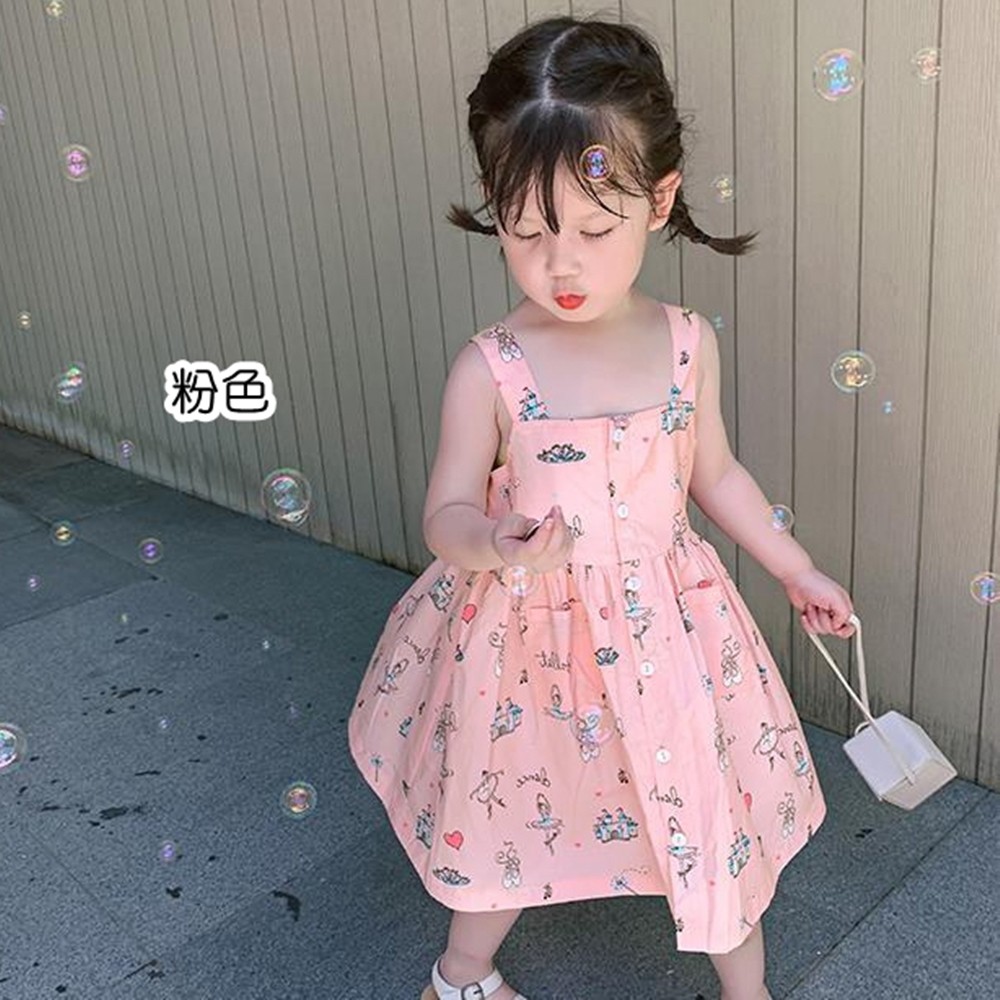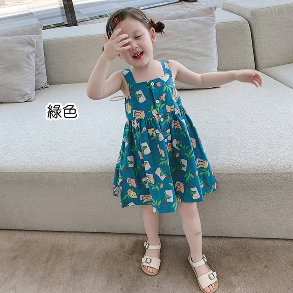 滿印平口排釦傘擺吊帶洋裝 吊帶裙 連身裙 裙子 女童 中童 現貨 童裝 橘魔法 童裝【BB7970】