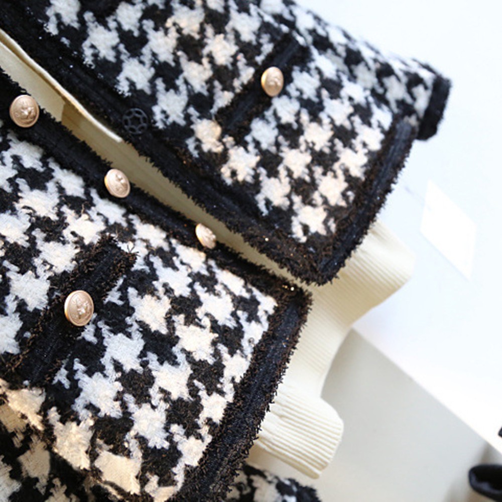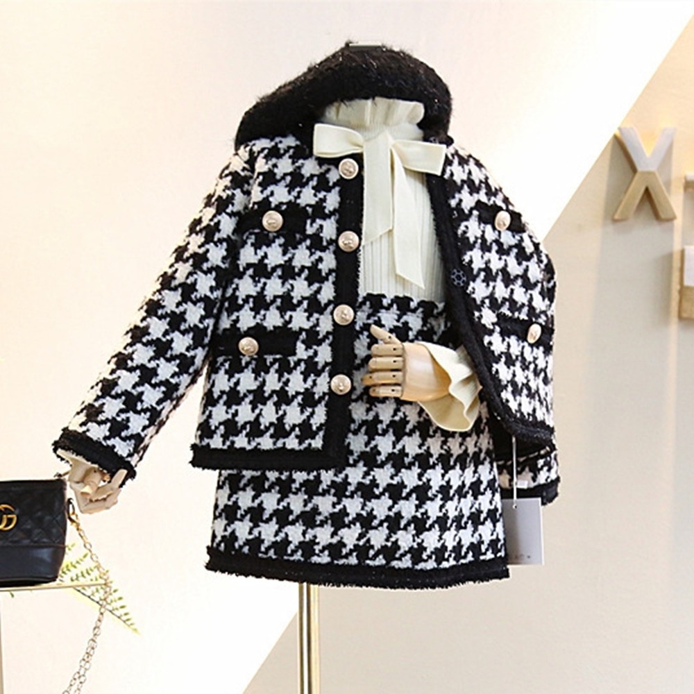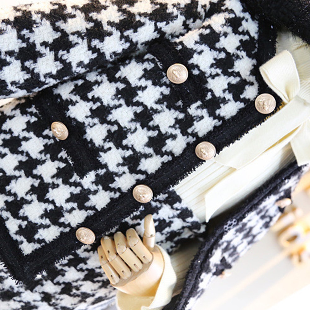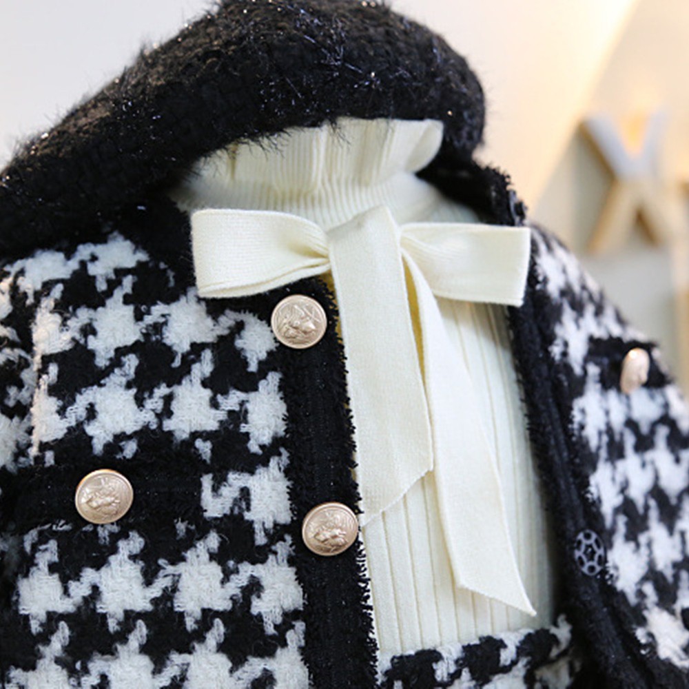 高貴小香風黑白格棉毛套裝 外套 窄裙 長袖外套 厚外套 正式 女童 童裝 兒童 橘魔法 現貨【BB7049】