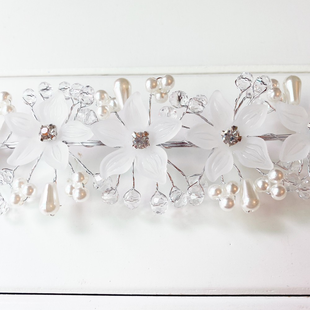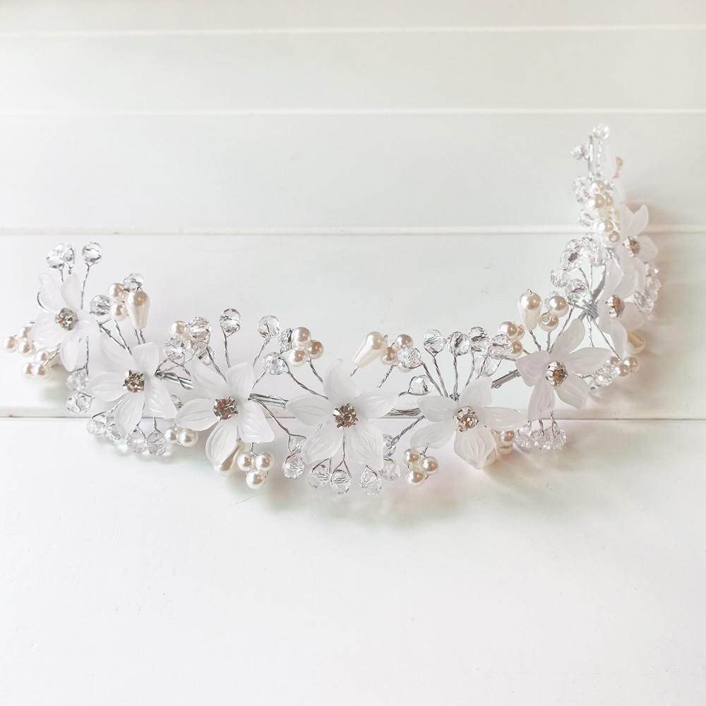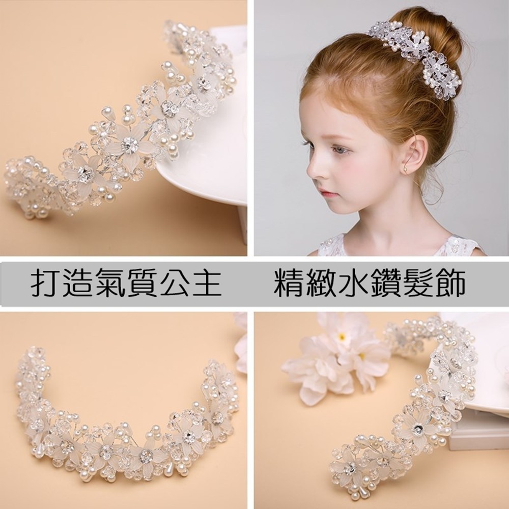 白色水鑽花朵頭飾 花環 禮服搭配 飾品 髮飾 女童 橘魔法 現貨 童裝 花童 禮服【BB7447】