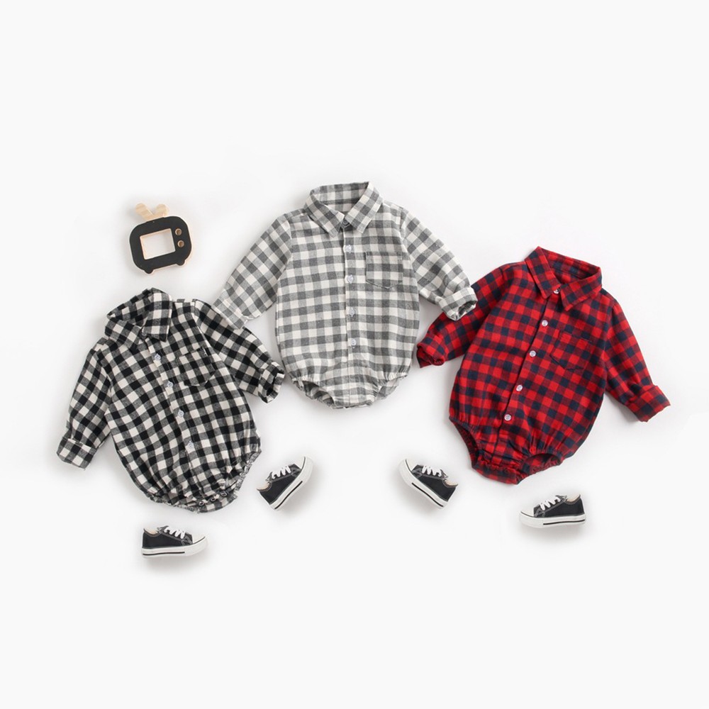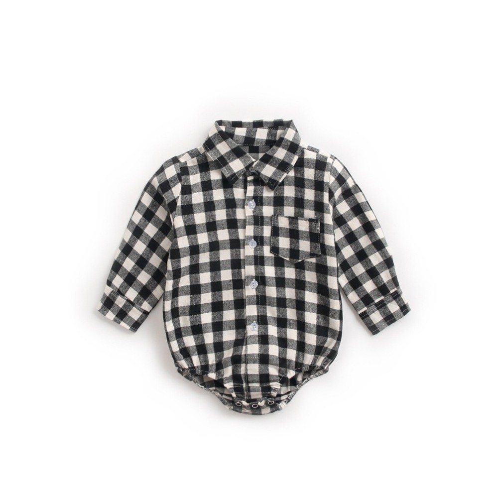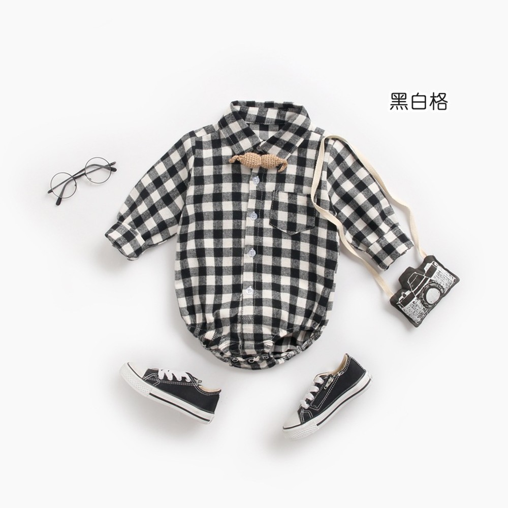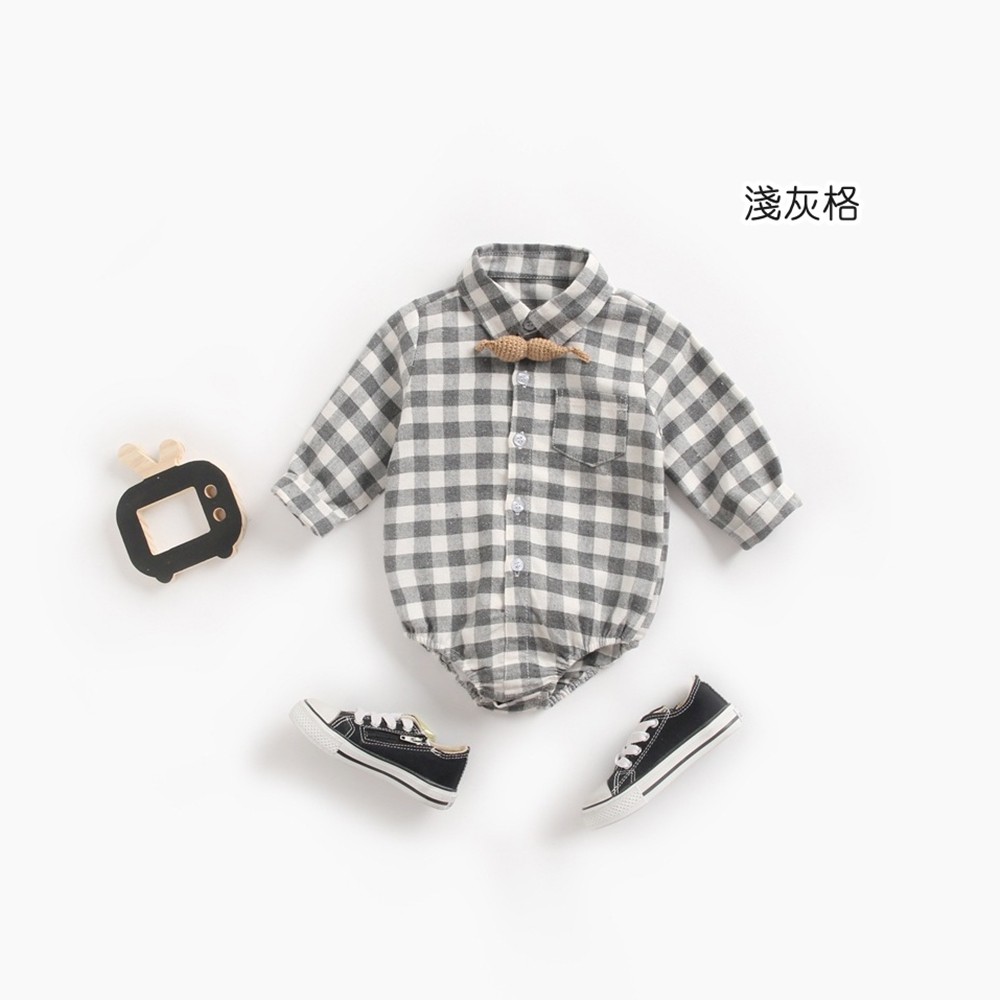 格紋長袖包屁衣 薄長袖 連身衣 中性款 童裝 寶寶 嬰兒 男童 女童 童裝 橘魔法 現貨【p0061216581463】