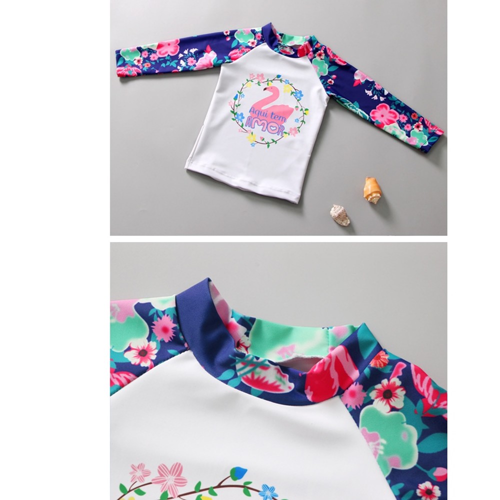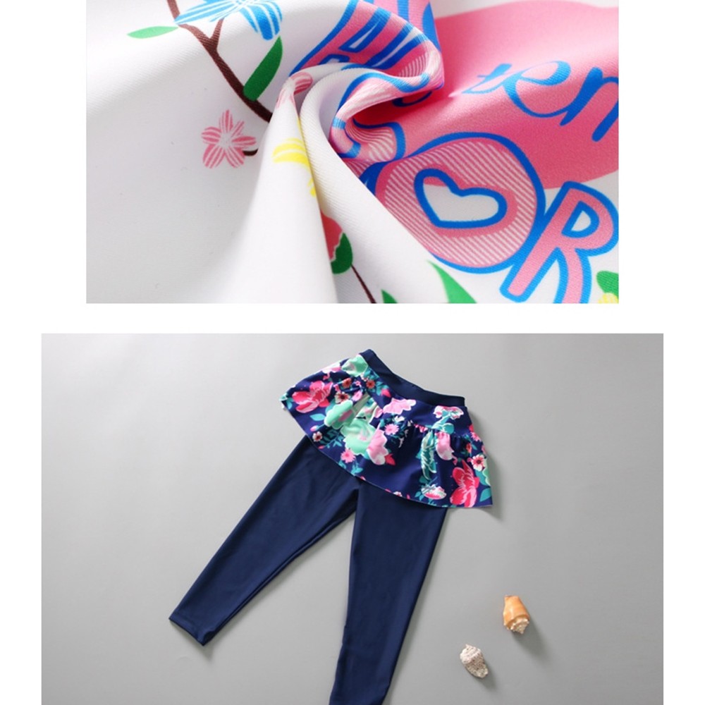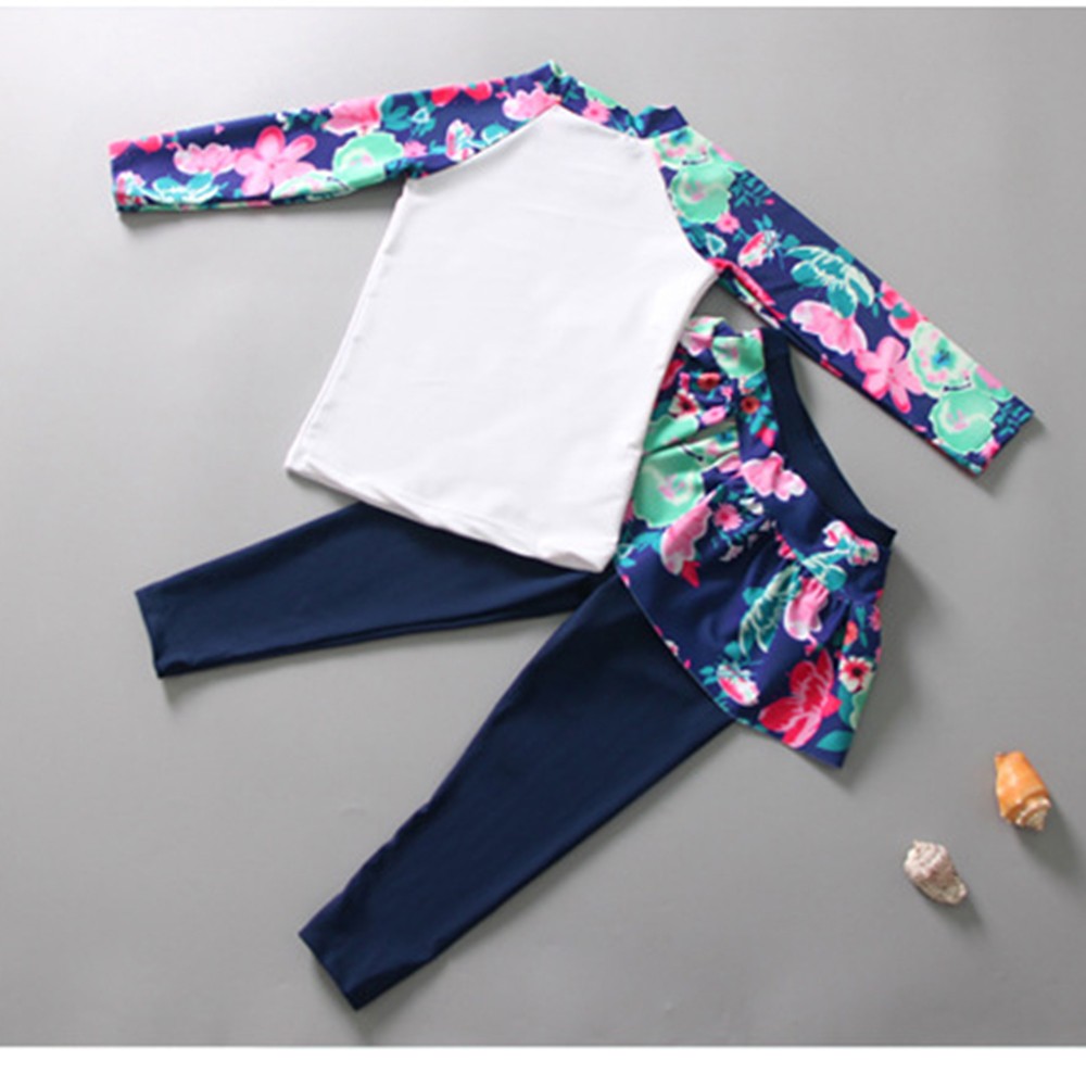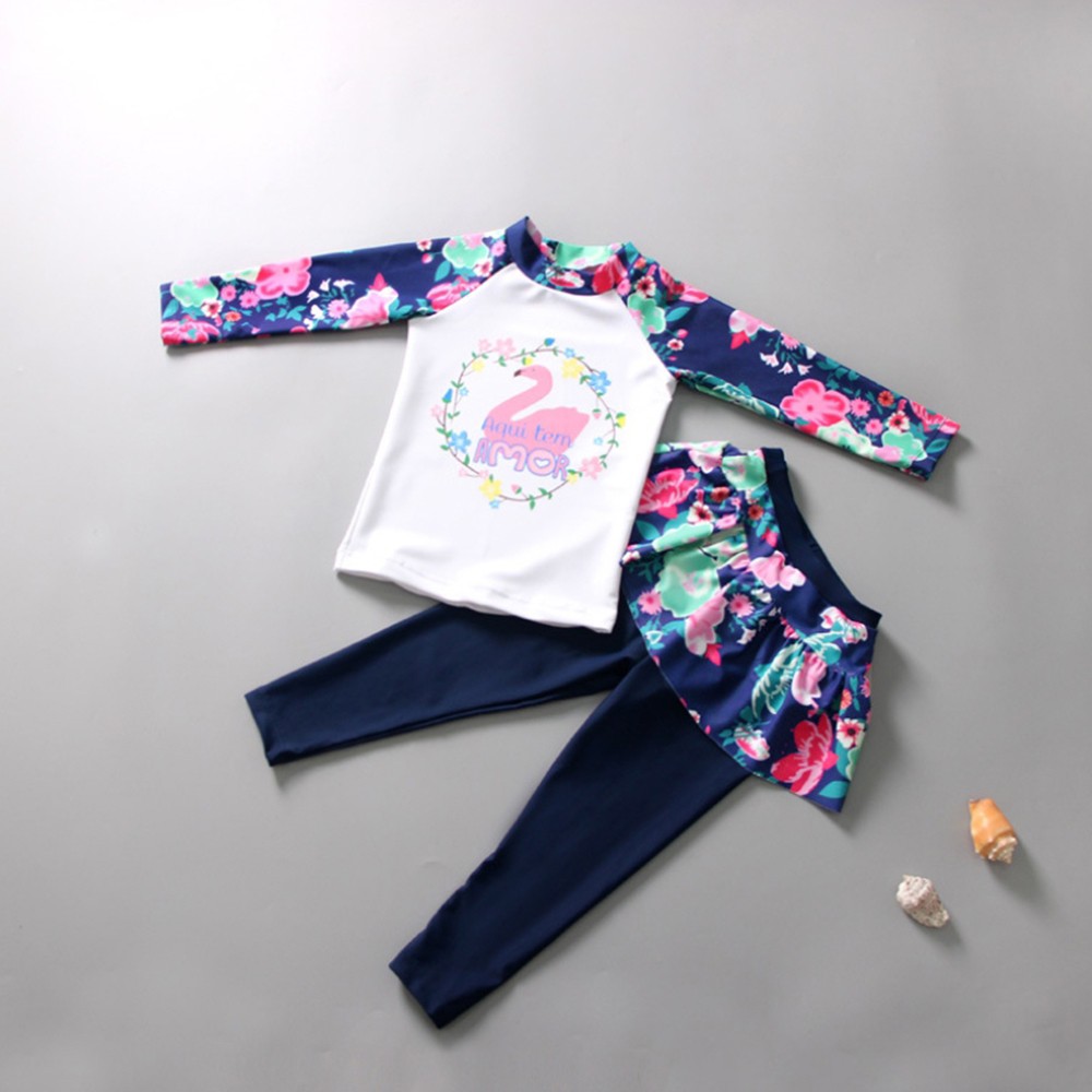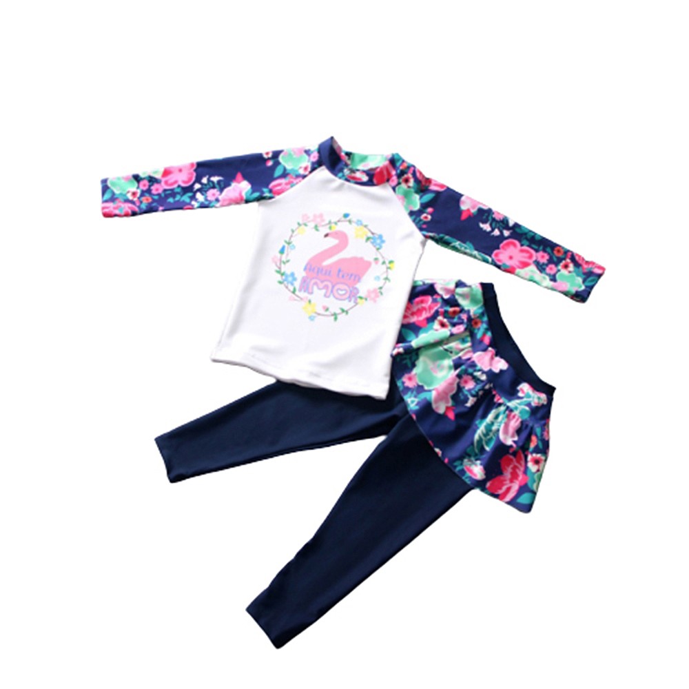 天鵝防曬長袖碎花泳裝+褲裙長褲泳褲 套裝 水母衣 防寒 大童 女童 兒童 防曬 泳裝【BB8206】