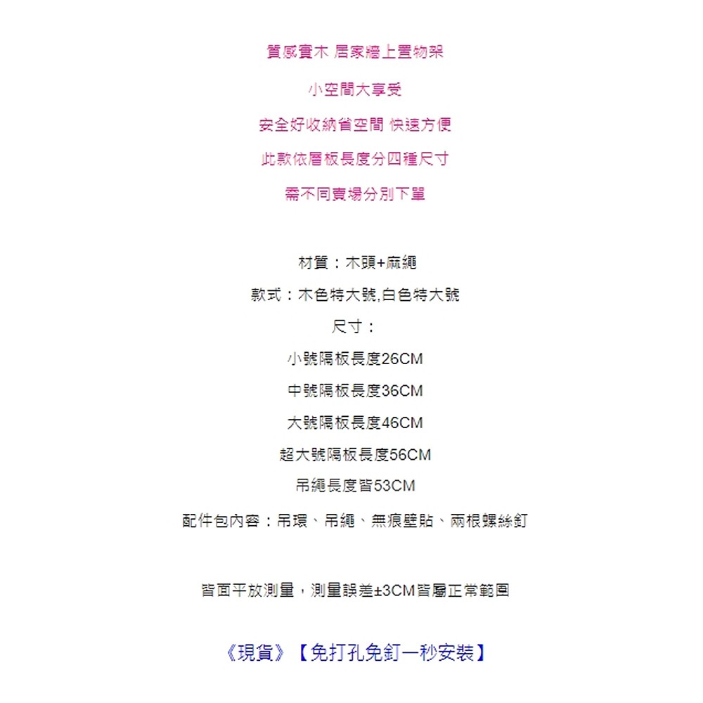 (特大號賣場) 北歐風吊繩實木置物架 花架 免釘 壁掛 盆栽 吊架 無痕掛架 橘魔法【p0061226904976】