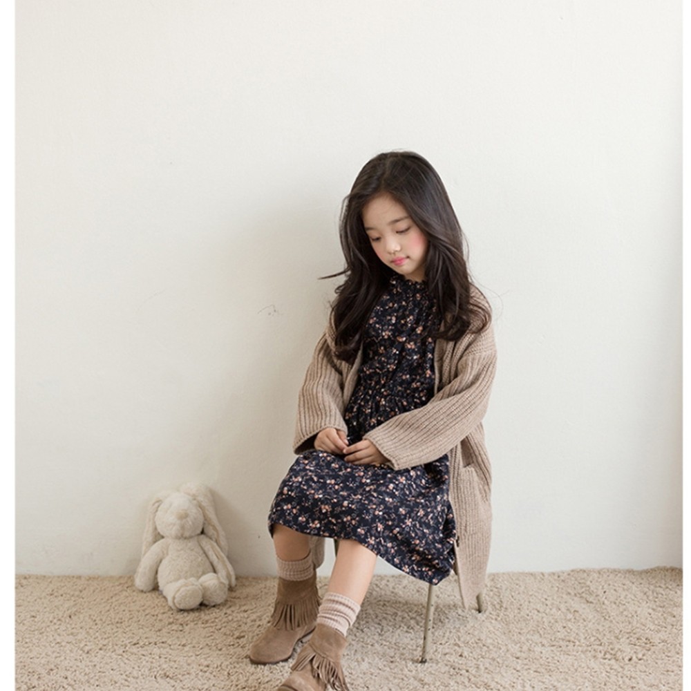 碎花薄棉絨洋裝 長袖洋裝 連身洋裝 連衣裙 洋裝 女童 大童 橘魔法【p0061197456601】