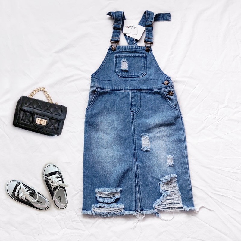 親子款刷破吊帶裙開岔長裙 (大人賣場) 背帶裙 吊帶裙 牛仔 親子裝 母女裝 女童【p0061214699471】