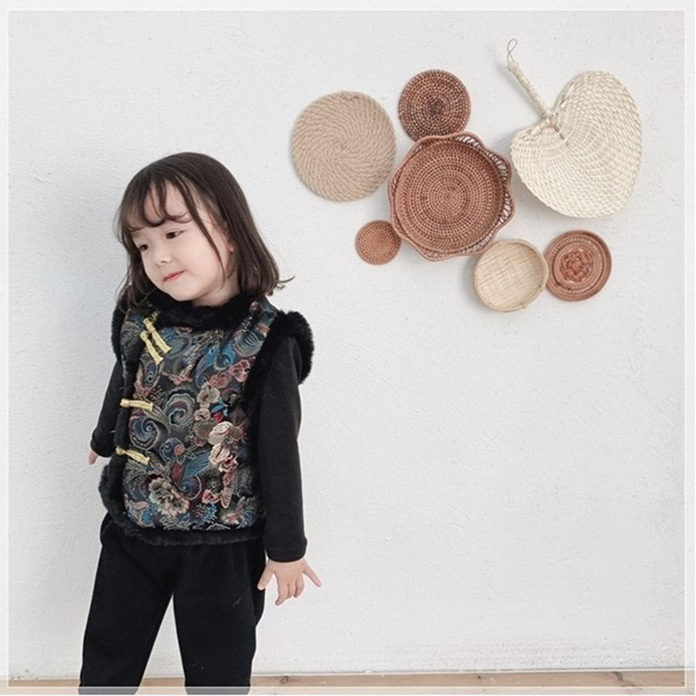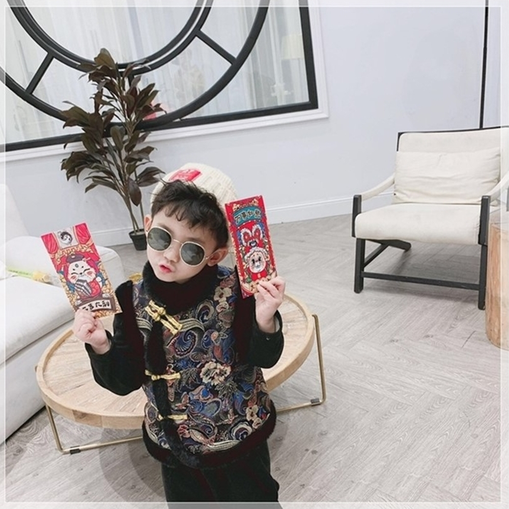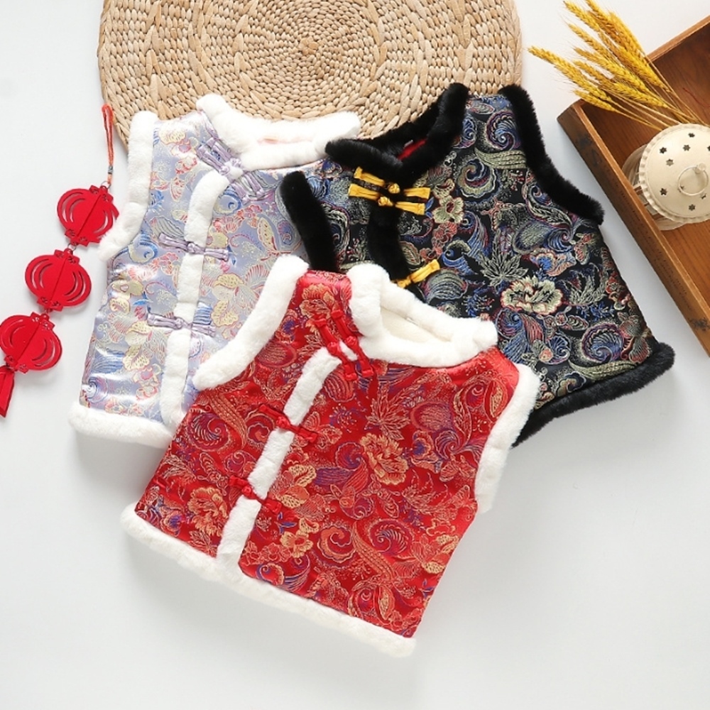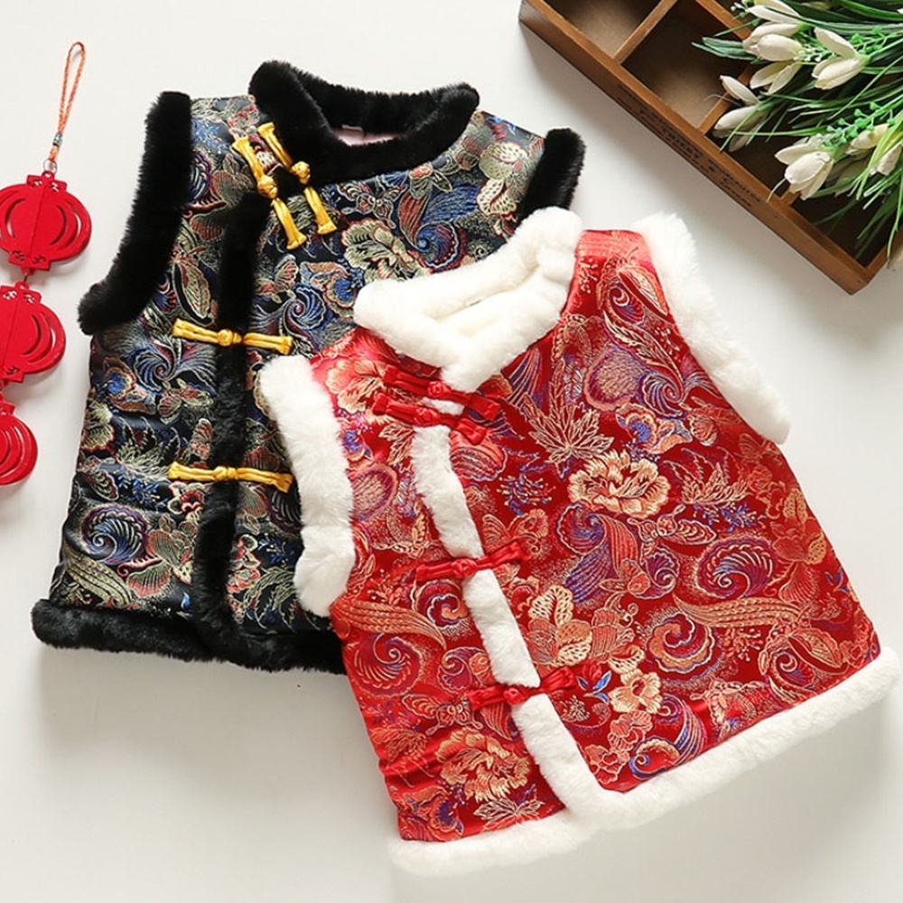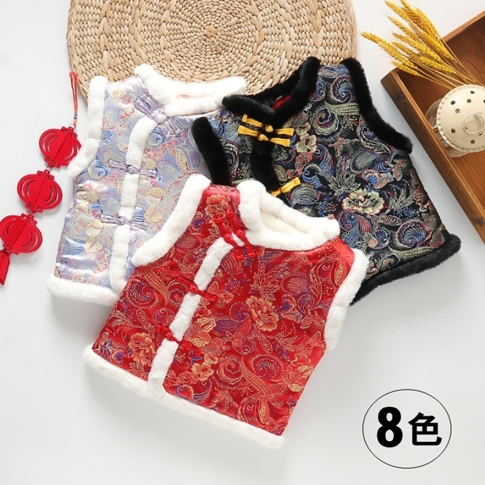 雲彩蝶紋牡丹毛毛領刺繡背心 大童 中國風 新年 過年 拜年 馬甲 唐裝 大紅 男童 女童 童裝 兒童【BB9328】