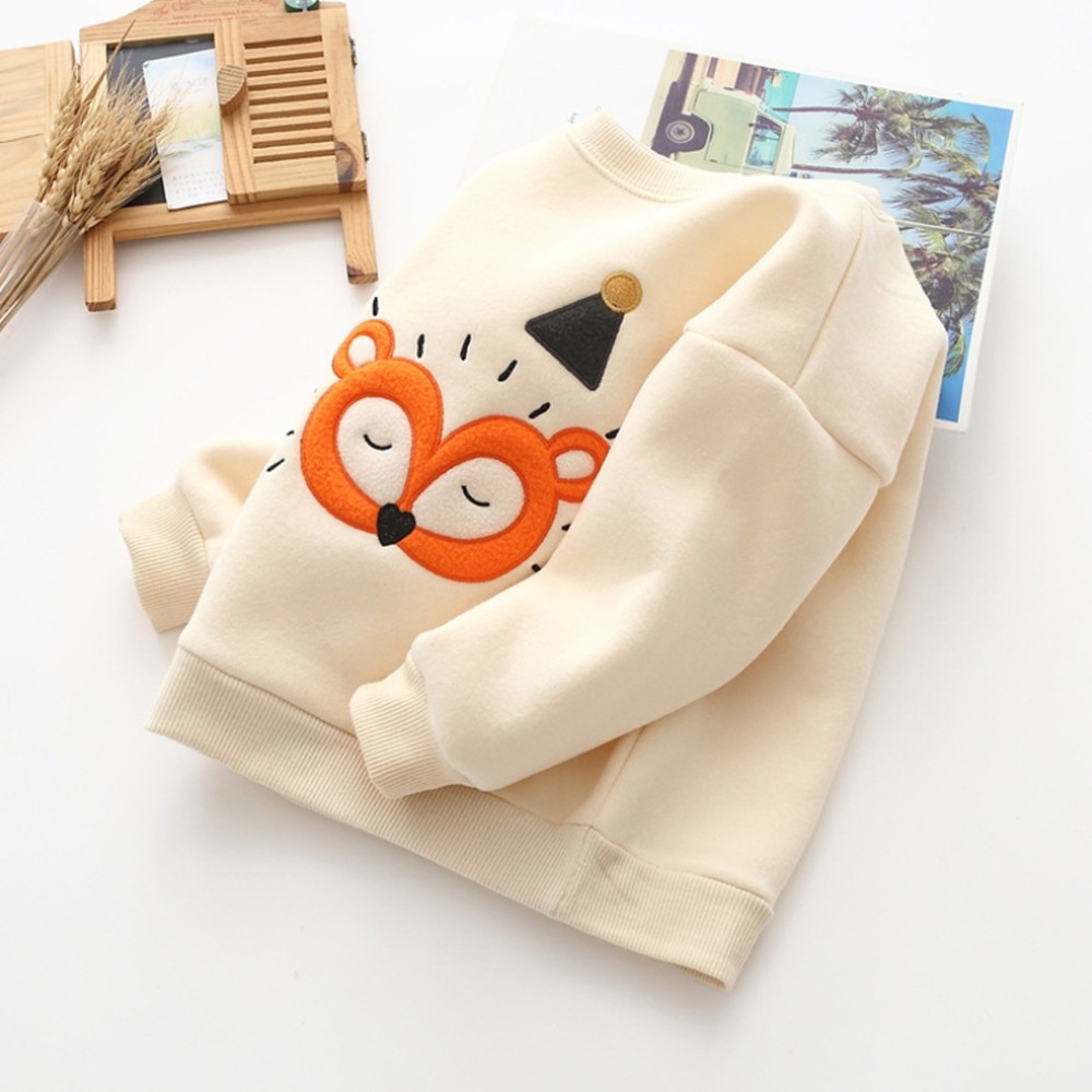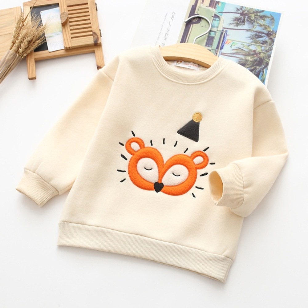 可愛狐狸刺繡棉絨長袖上衣 衛衣 中性款 男童 女童 中童 兒童 童裝 橘魔法 現貨【p0061220700013】