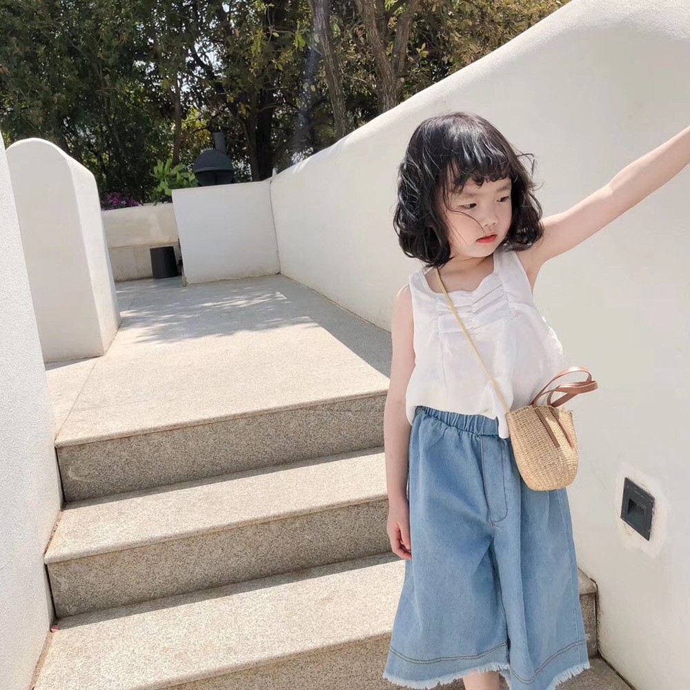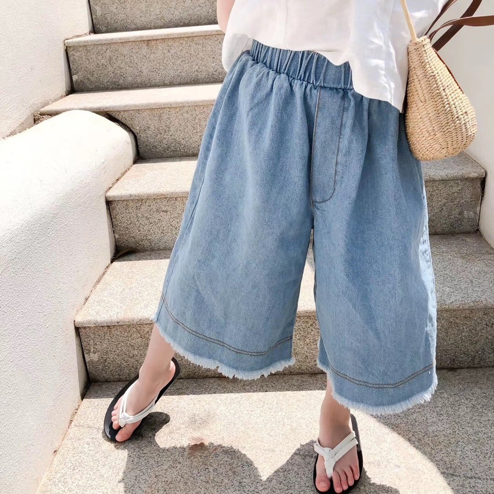 女童 鬚邊闊腿褲 褲裙 牛仔褲 寬褲 褲子 女童 橘魔法 童裝 現貨【p0061206877874】