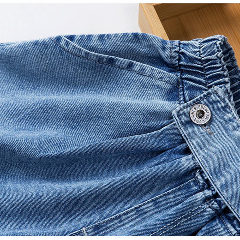 女童側扣腰帶裝飾造型 牛仔褲 褲裙 短褲 褲子 大童 女童 橘魔法 現貨【BB7555】