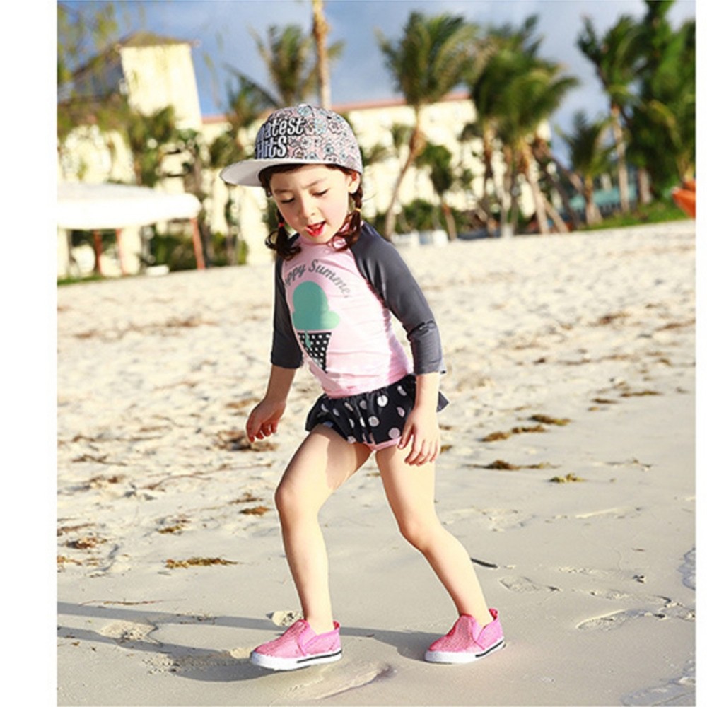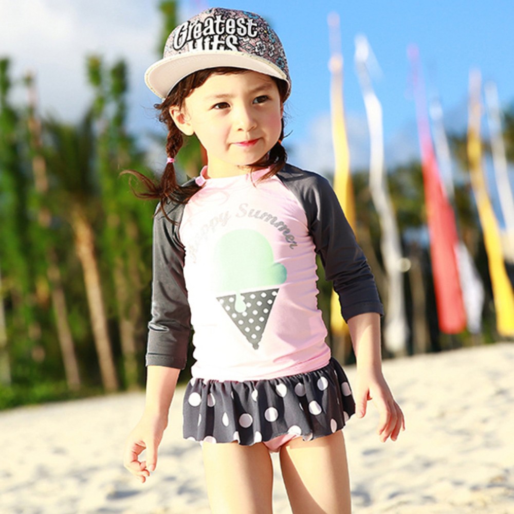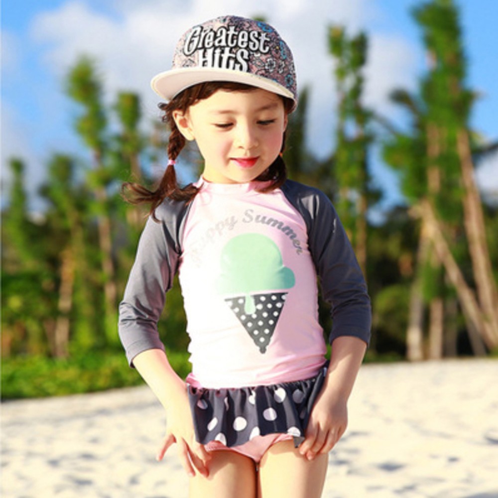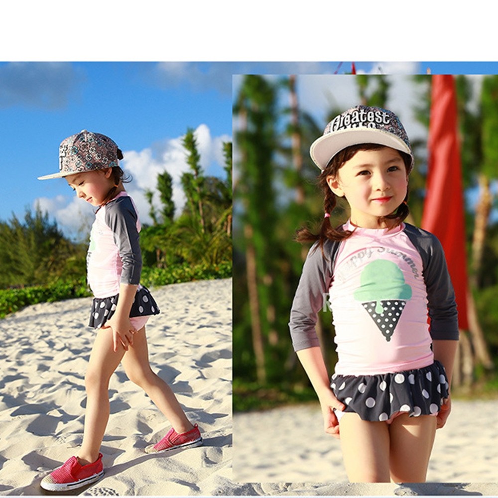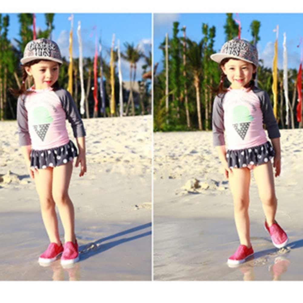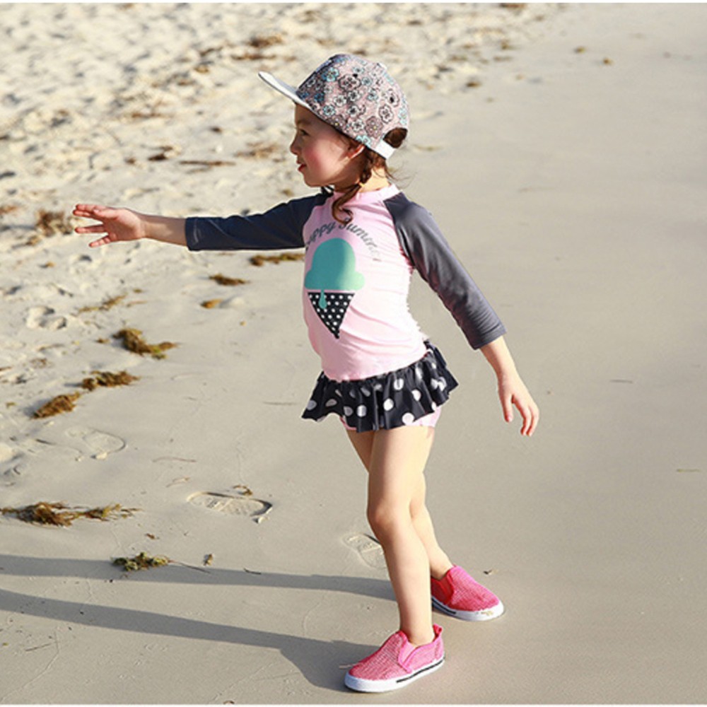 冰淇淋插肩泳裝+點點褲裙泳褲 套裝 防曬 防寒 防曬 泳裝 水母衣 女童 【BB8823】