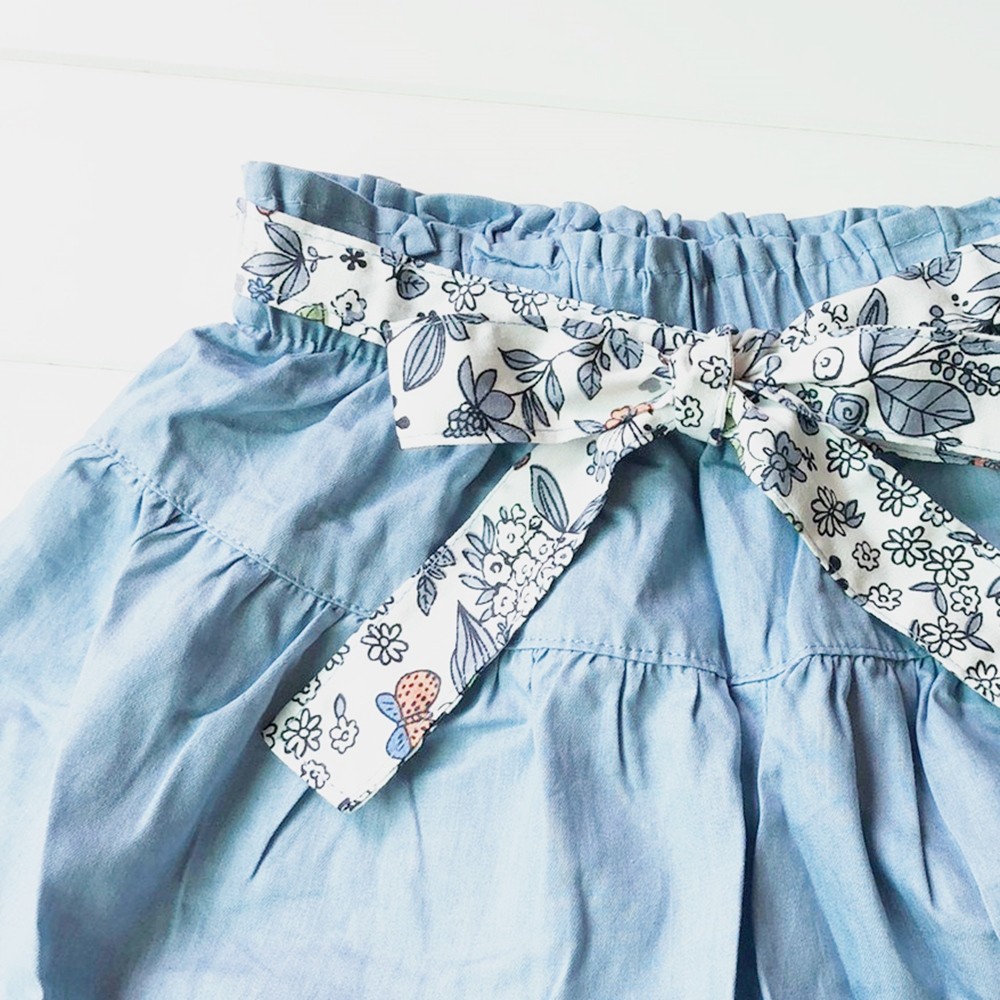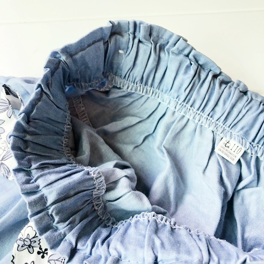 女童碎花腰帶 散擺牛仔褲 褲裙 短褲 鬆緊褲頭 牛仔短褲 褲子 大童 女童 橘魔法 p0061205676456】