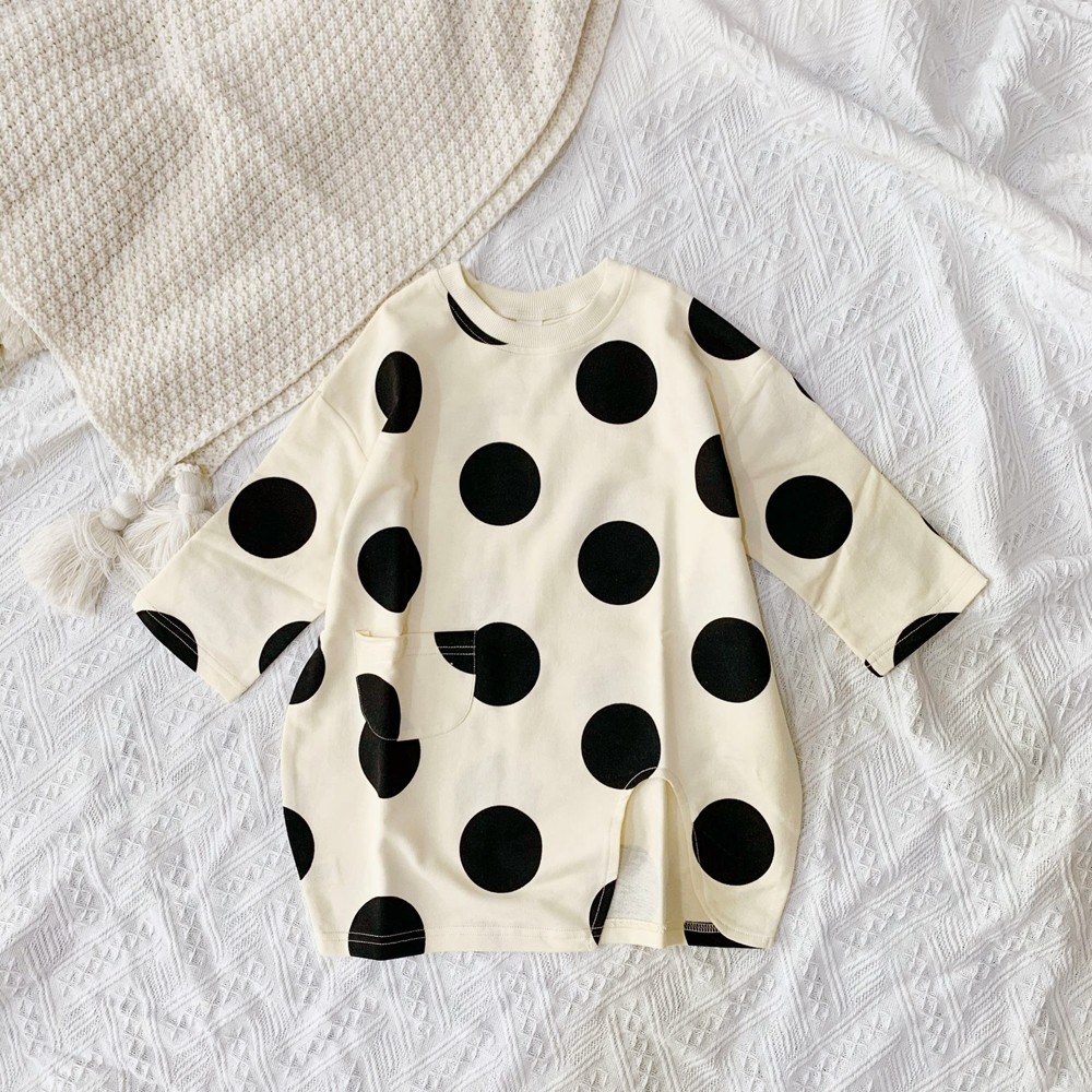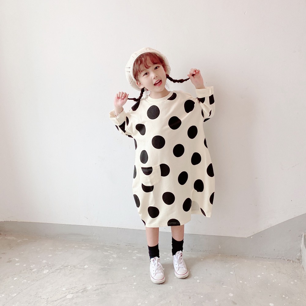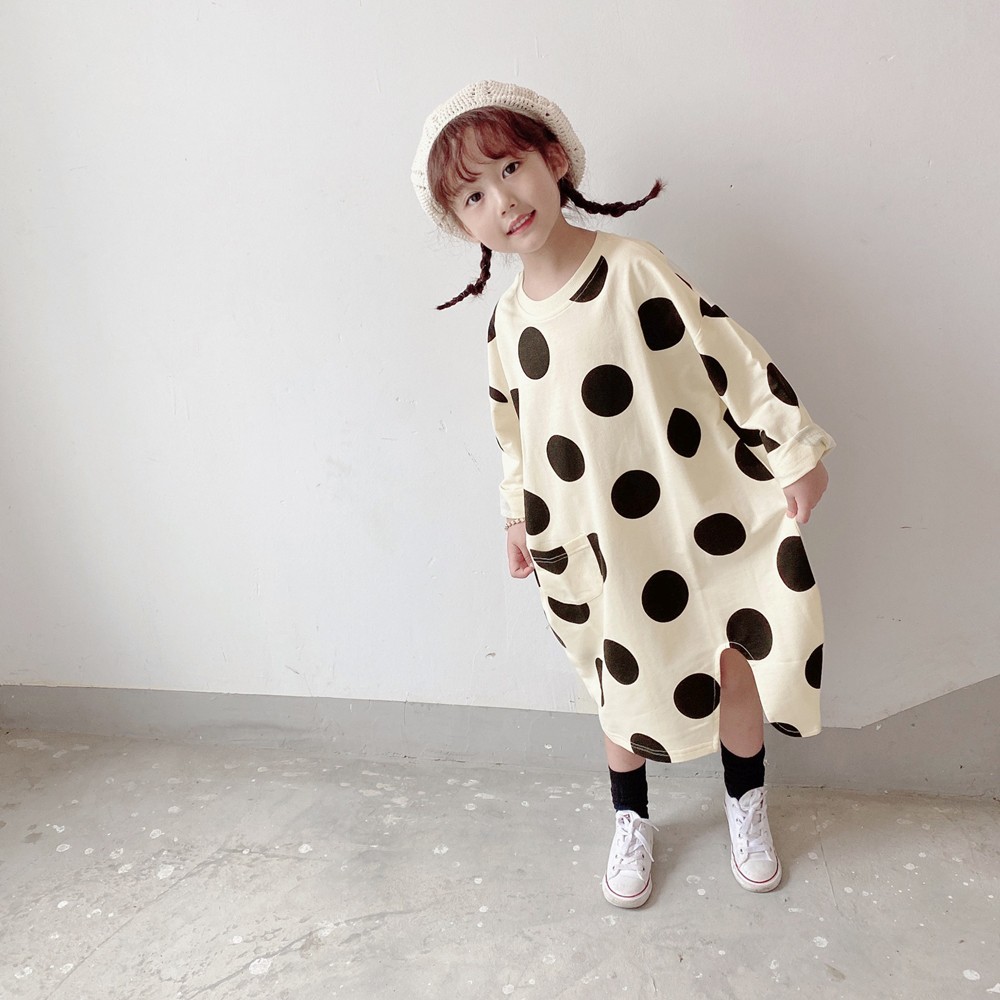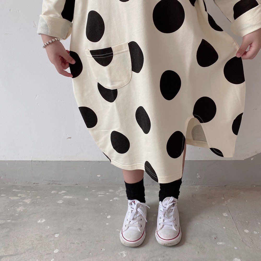 大點點口袋長版衛衣 長袖上衣 長版上衣 長袖 連身裙 女童 橘魔法 現貨 兒童 童裝【p0061214875244】
