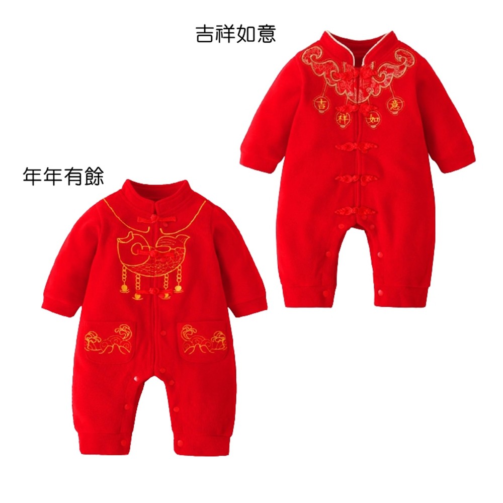 刺繡拜年中國結大紅連身包屁衣 兔裝 新生兒 寶寶 童裝 拜年服 過年 大紅 新年 橘魔法【p0061218156074】