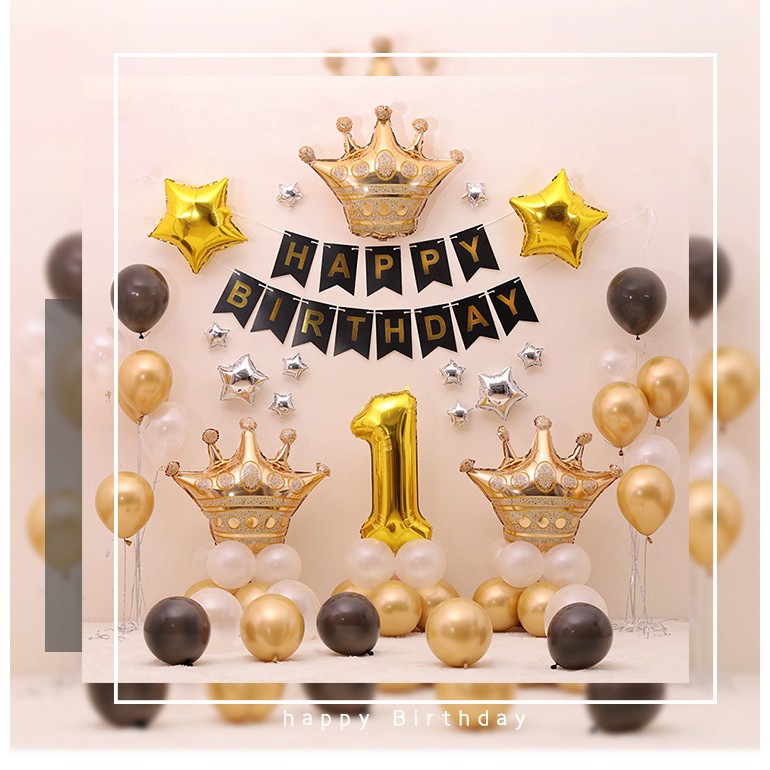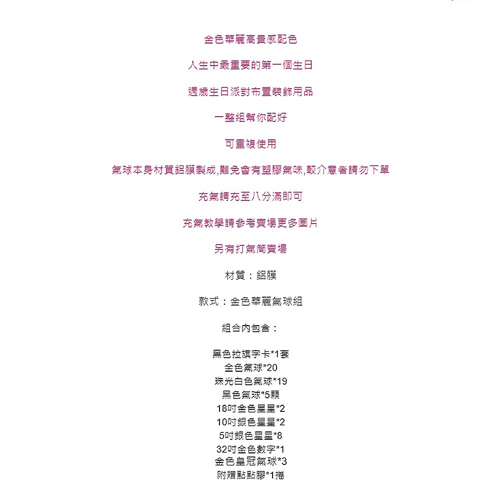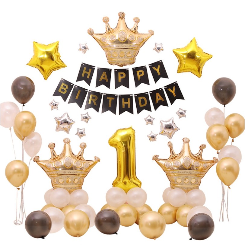 金色華麗風生日快樂週歲氣球套裝組 週歲 場景 布置用品 生日快樂 嬰兒 寶寶 拉條 橘魔法【p0061220287777