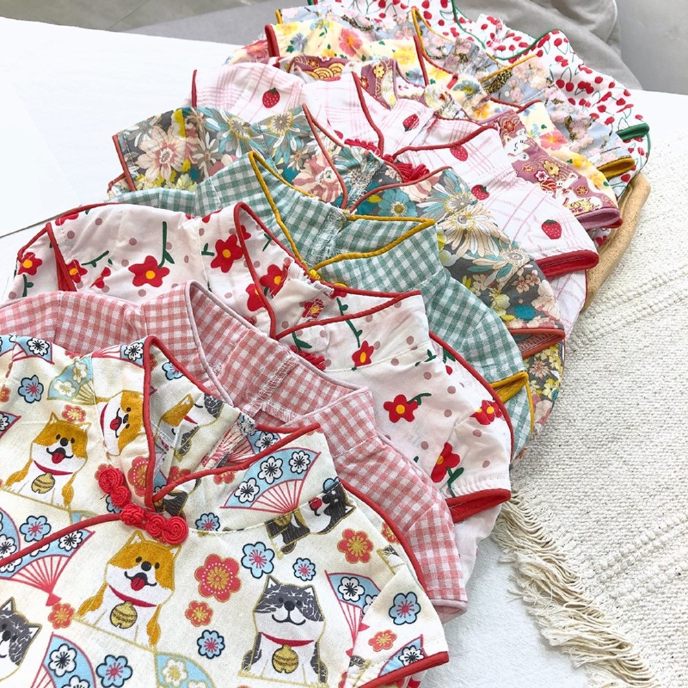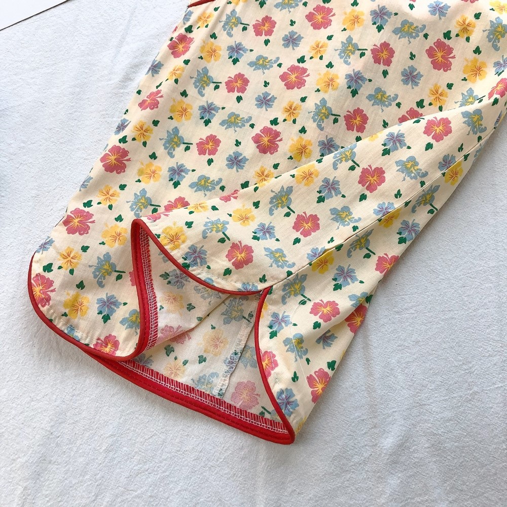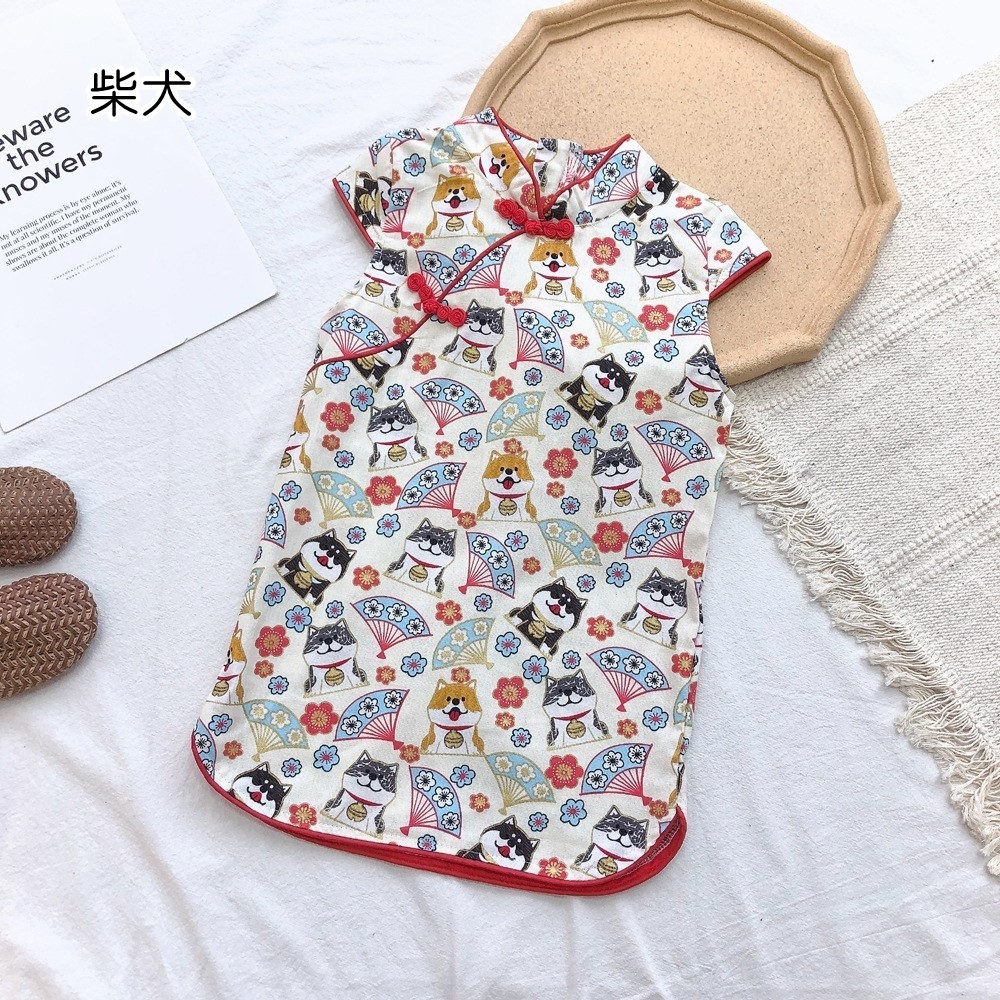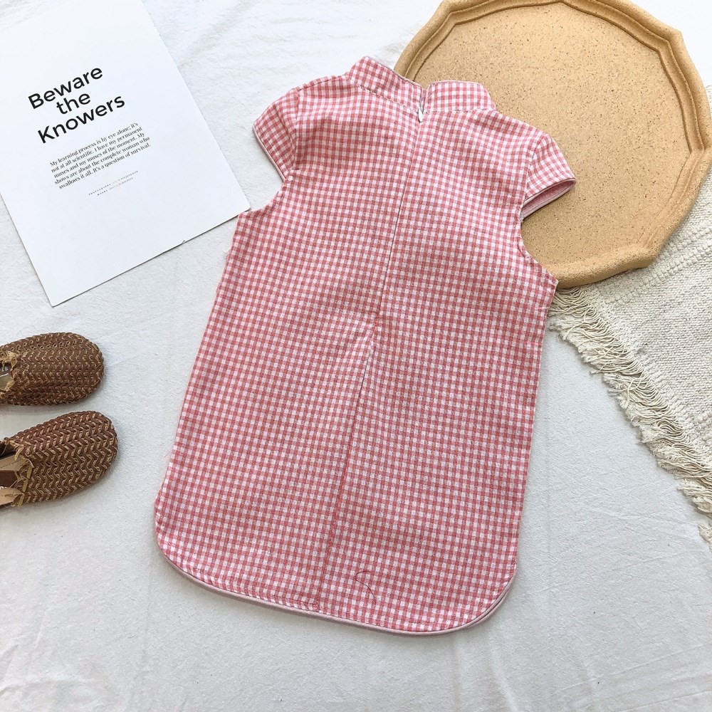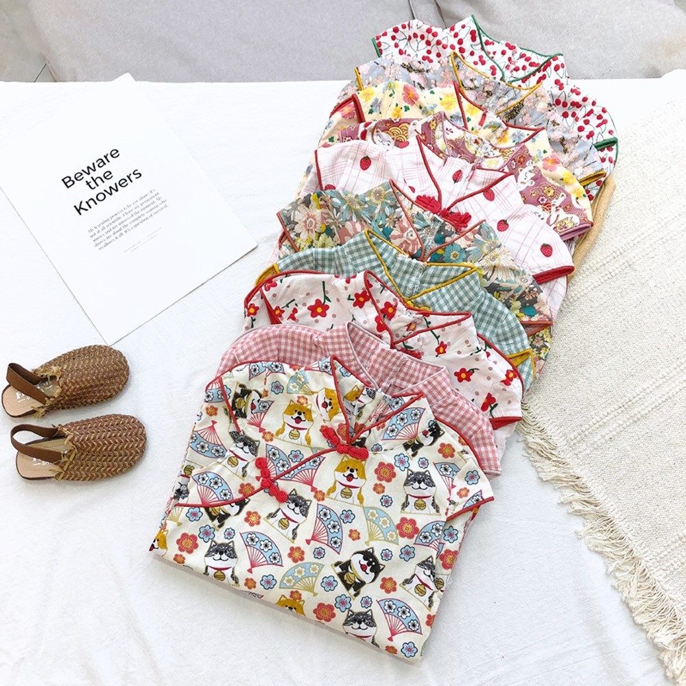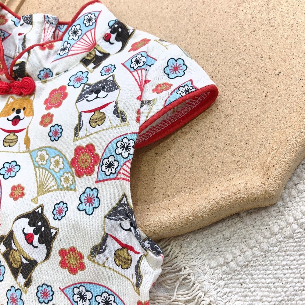印花滾邊盤扣造型小包袖旗袍洋裝 洋裝 女童 連身裙 中童 中國風 現貨 兒童 童裝 【BB7742】