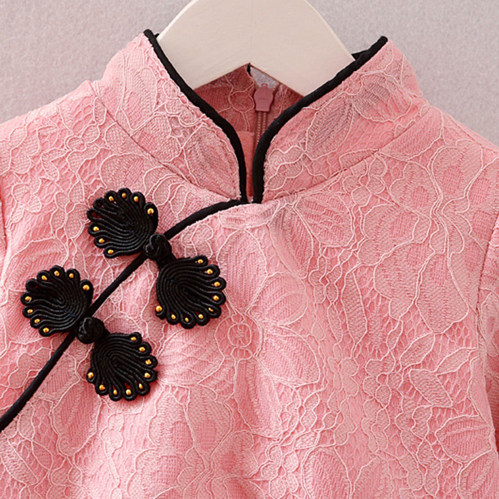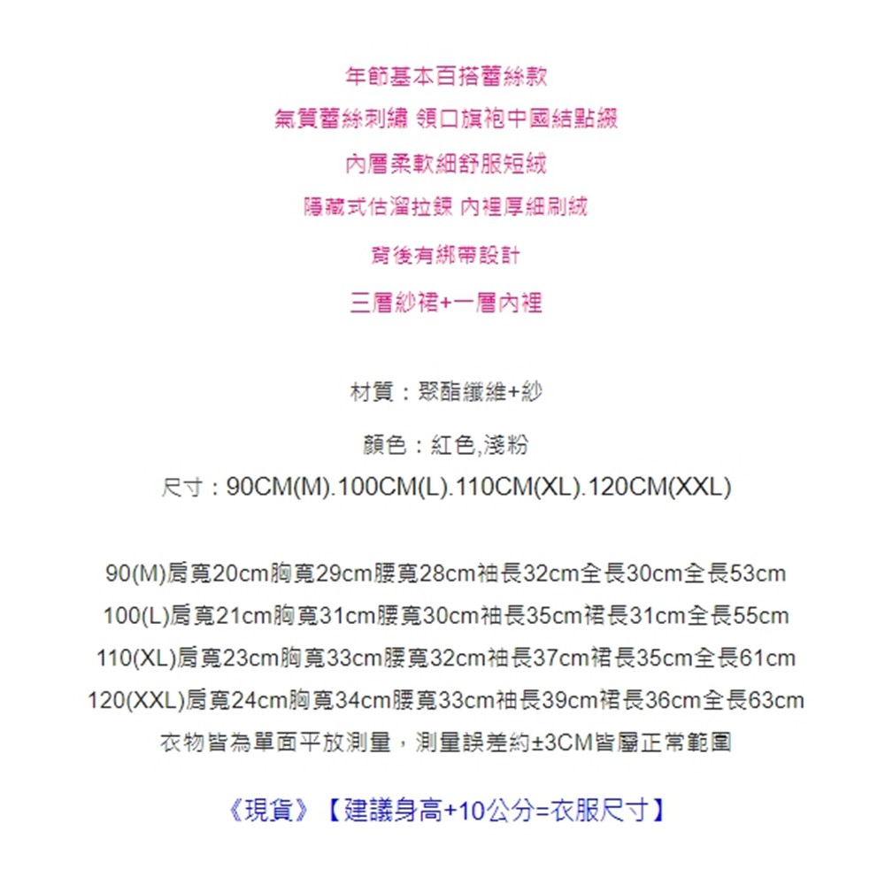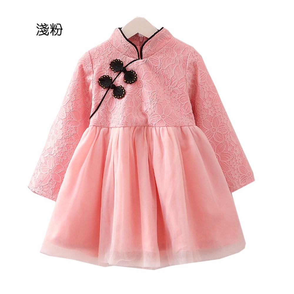 中國結盤扣蕾絲旗袍領拼接紗裙洋裝 寶寶旗袍裝 童裝 過年 唐裝 大紅 新衣 喜酒【p0061220427384】