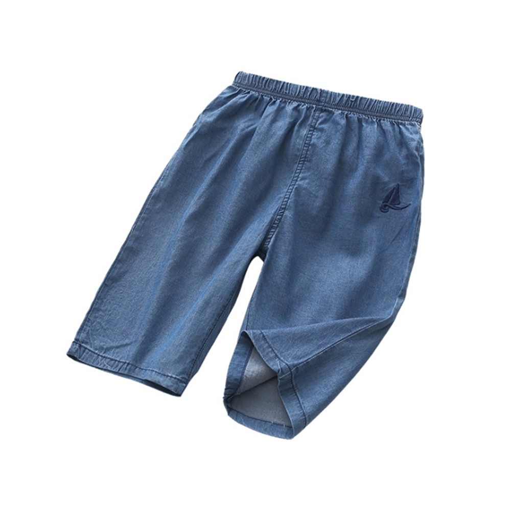 七分褲 輕薄水洗刺繡牛仔褲 大童 女童 童裝 兒童 沙灘褲 空調褲 橘魔法 現貨【p0061223412796】