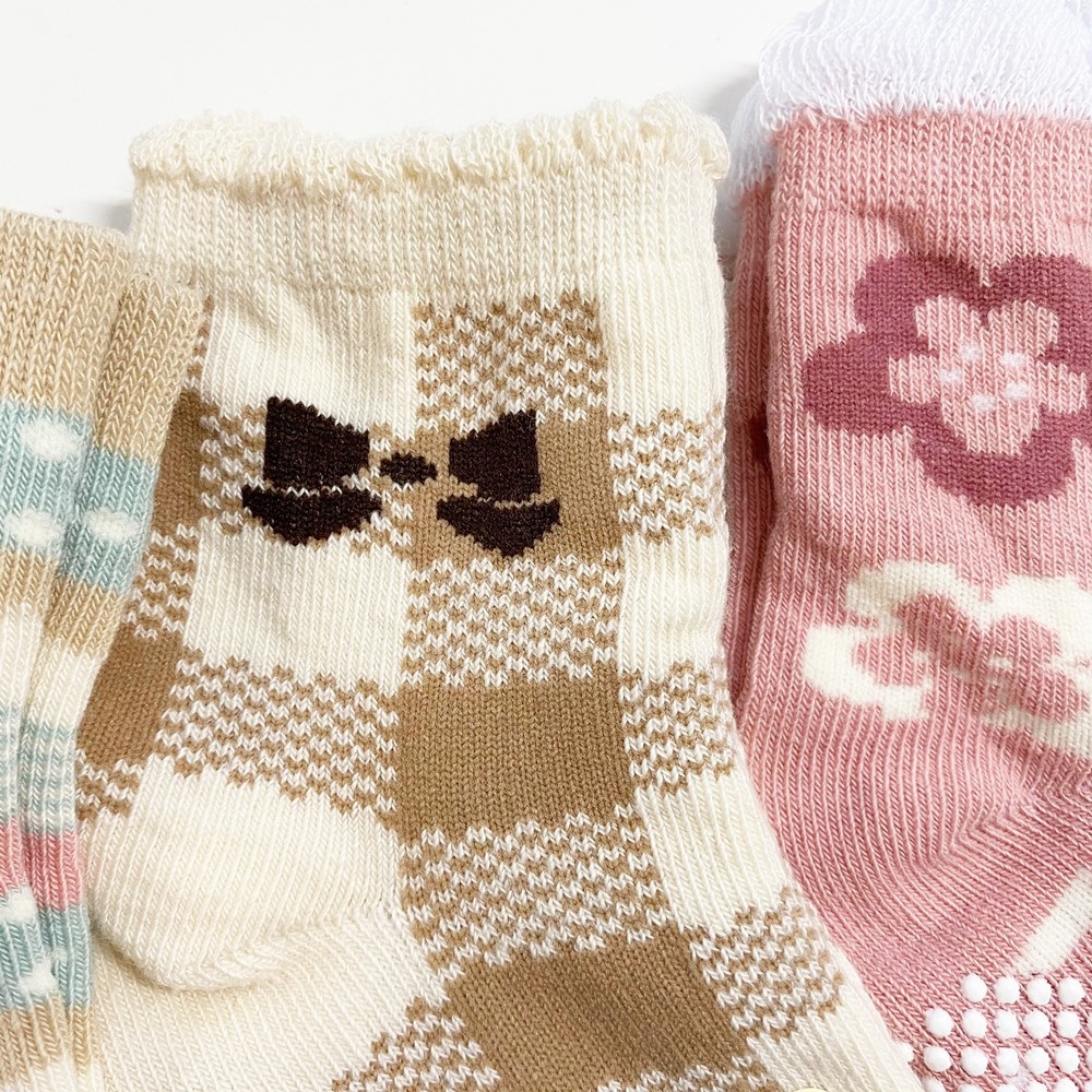 (5雙一組) 粉咖鄉村風防滑膠點中筒襪 中短襪 襪子 童襪 男童 中童 小童 兒童 現貨【p0061223533038】