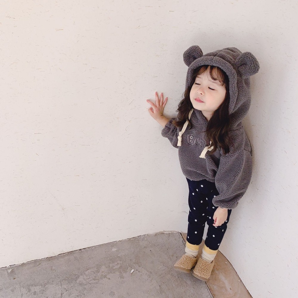 小童 連帽羊糕絨上衣 熊耳朵 毛毛上衣 帽T 長袖上衣 男童 女童 橘魔法 現貨 童裝【BB6577】