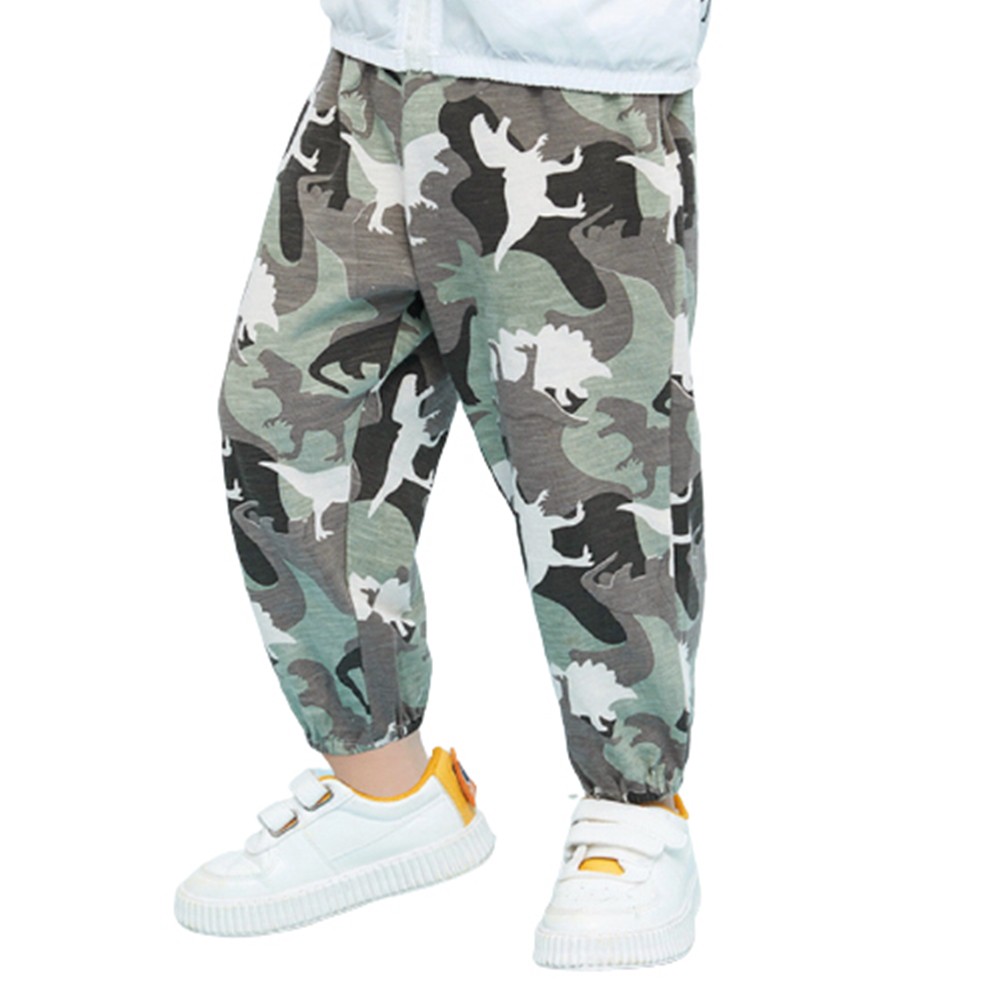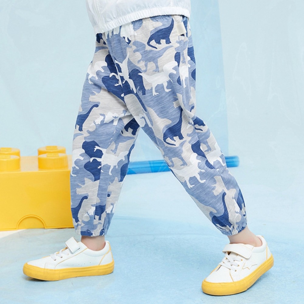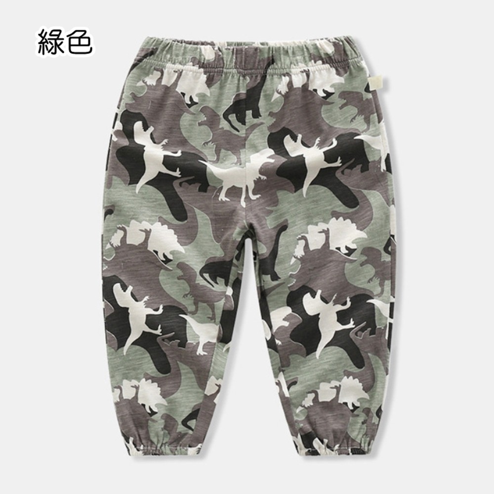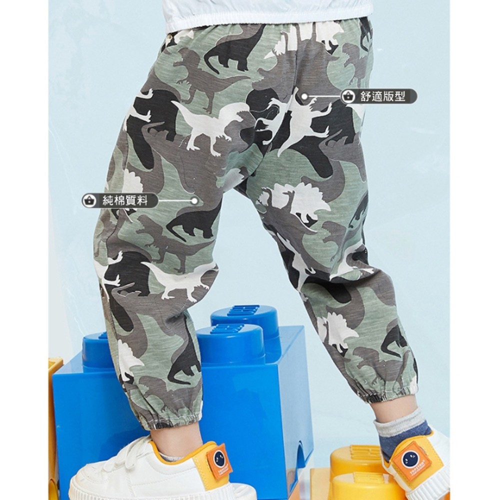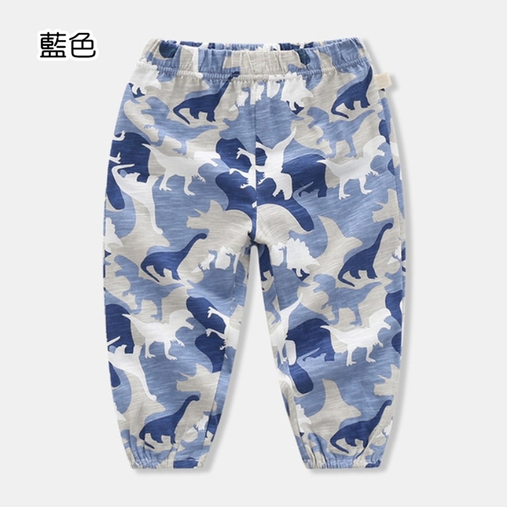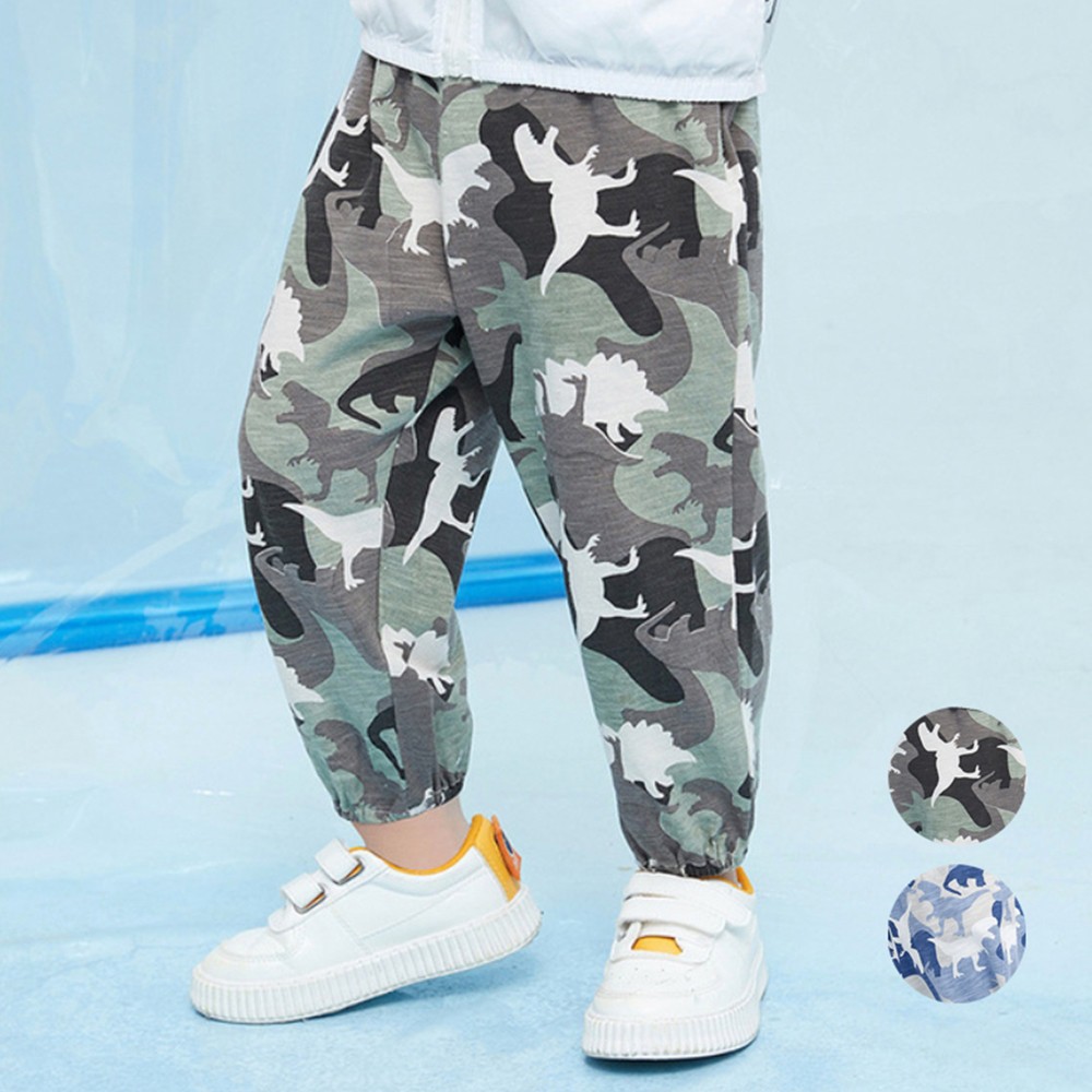 透氣竹節棉迷彩恐龍剪影縮口長褲 大童 防蚊褲 兒童薄長褲 空調褲 縮口褲 現貨 橘魔法【BB9443】