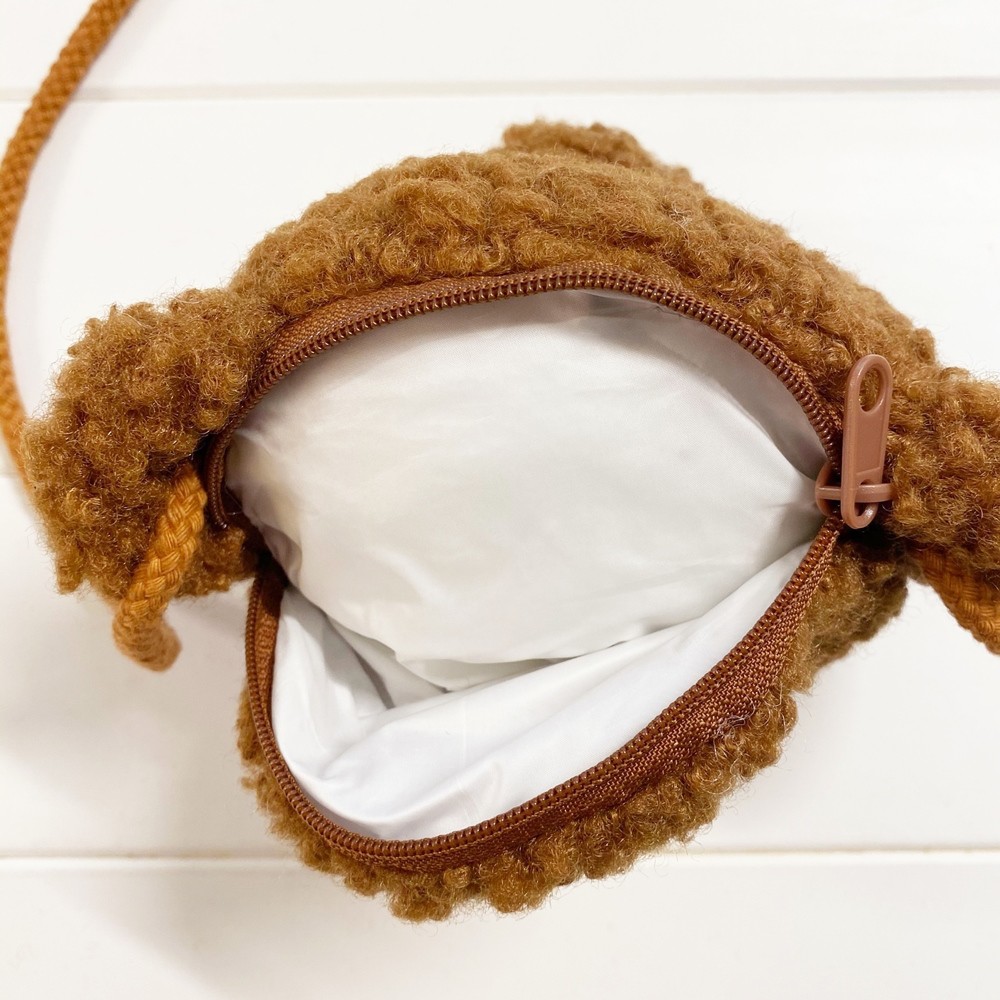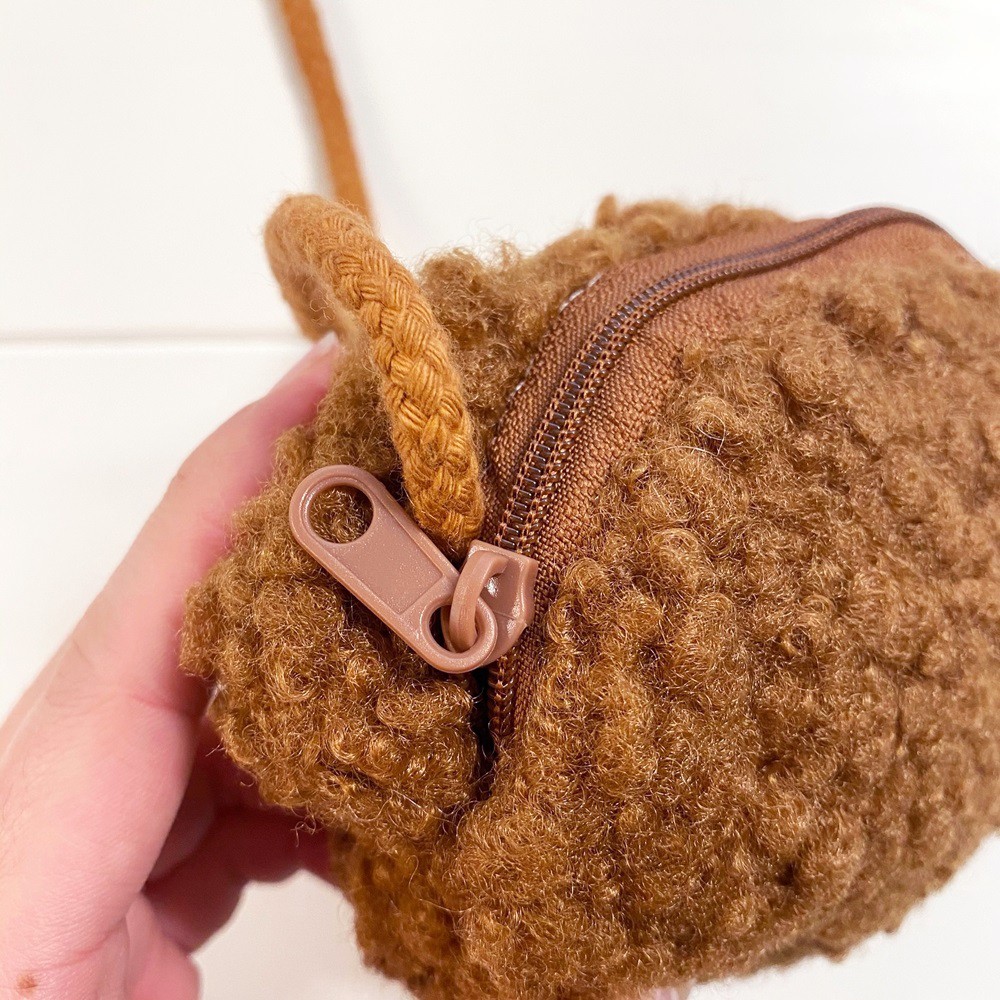 小熊頭毛茸茸斜背拉鏈小包 斜跨包 包包 跨肩 拉鏈包 小包 男童 女童 童裝 兒童【p0061222185127】