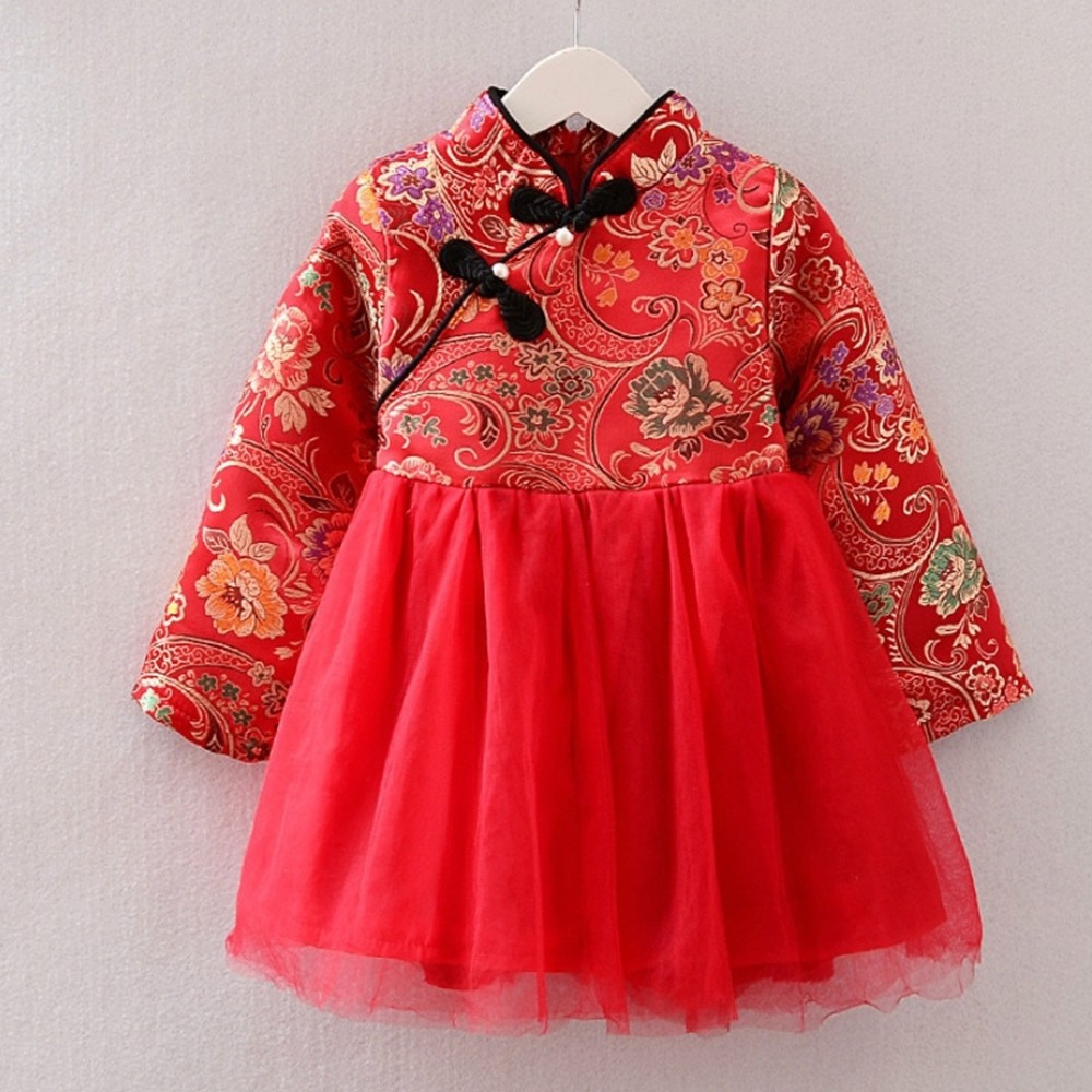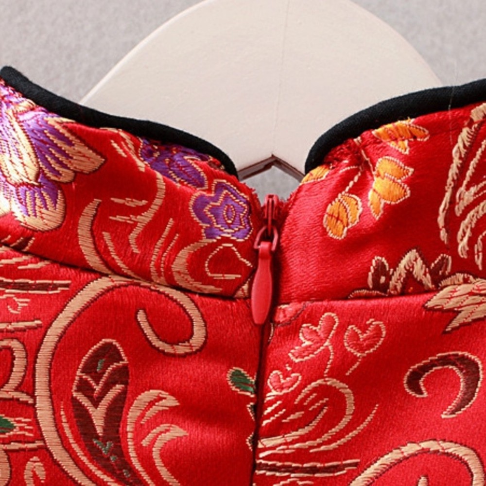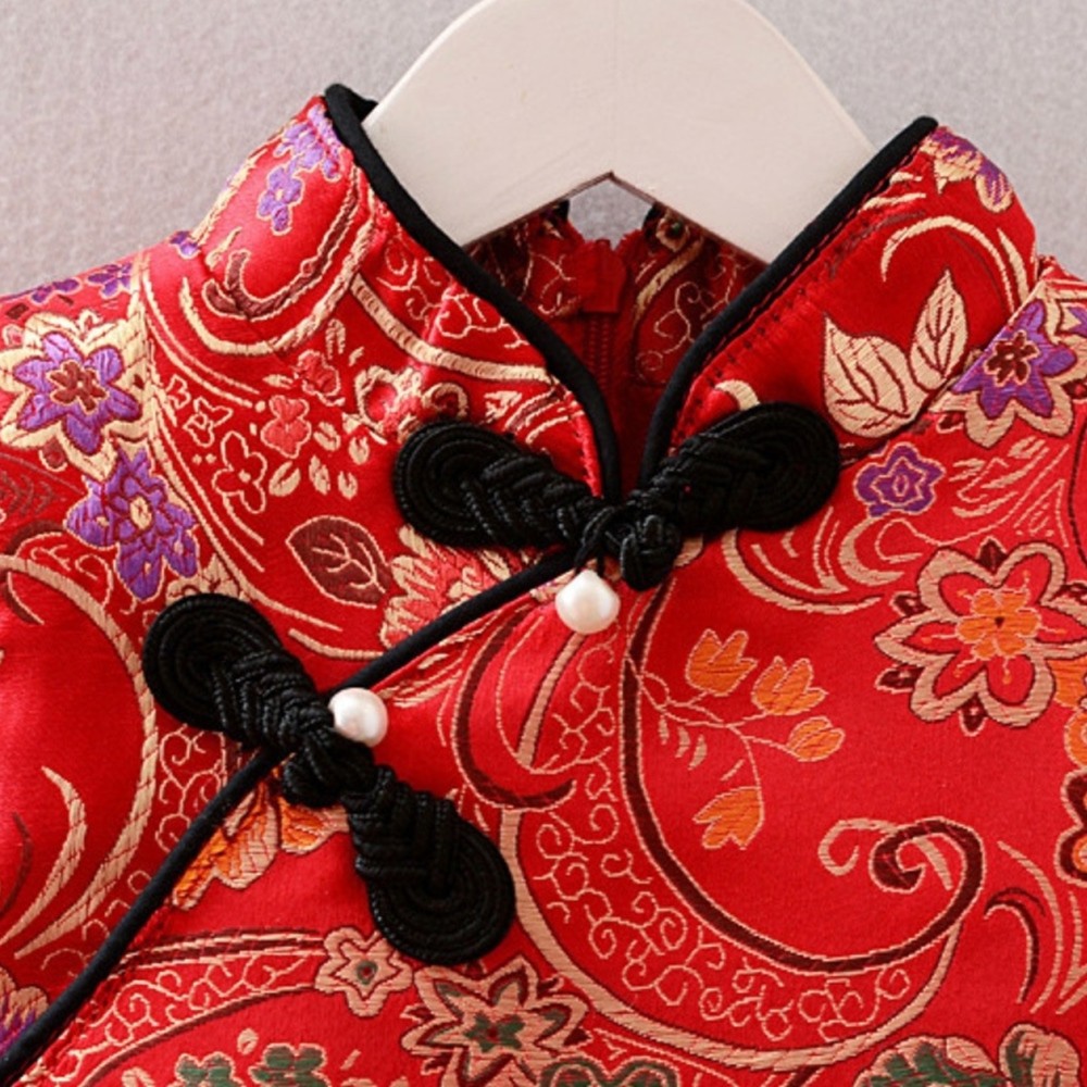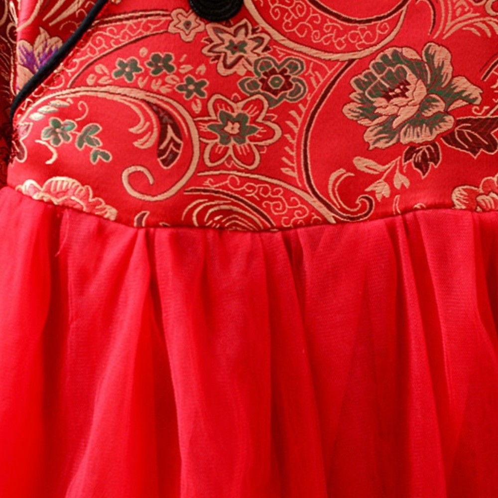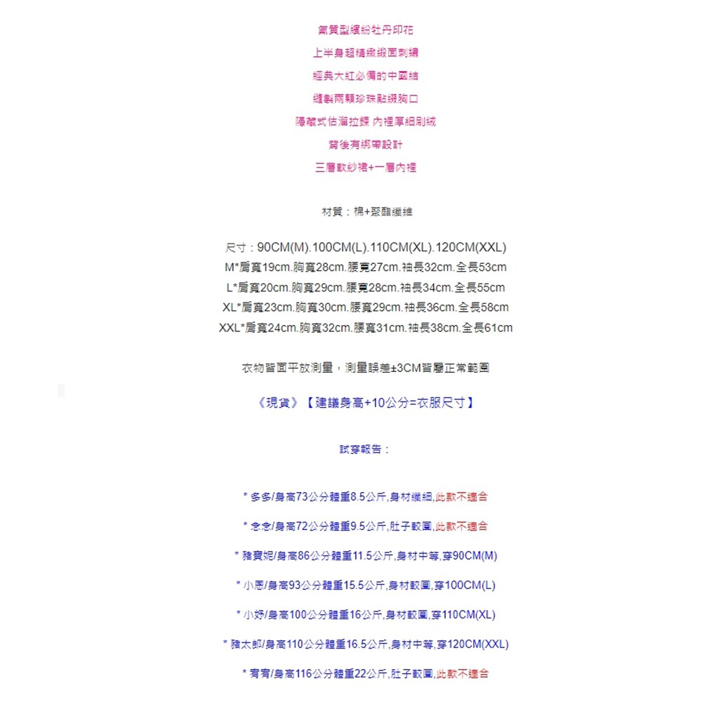 牡丹印花珍珠中國結旗袍洋裝 連衣裙 旗袍裝 童裝 過年 大紅 新衣 女童 拜年服 新年 【p0061222239771】