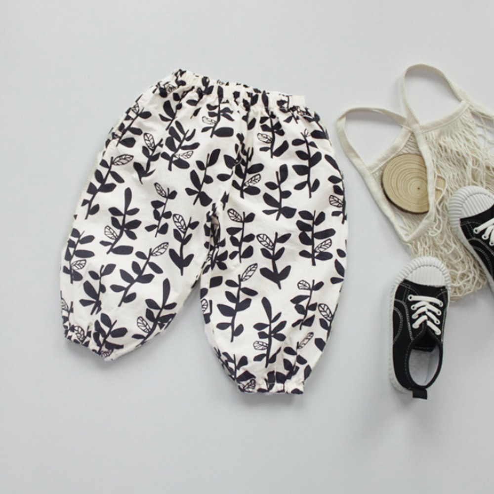 黑白樹葉印花寬鬆薄款縮口褲 七分褲 褲子 防蚊褲 中性款 男童 女童 童裝 兒童 【BB7799】